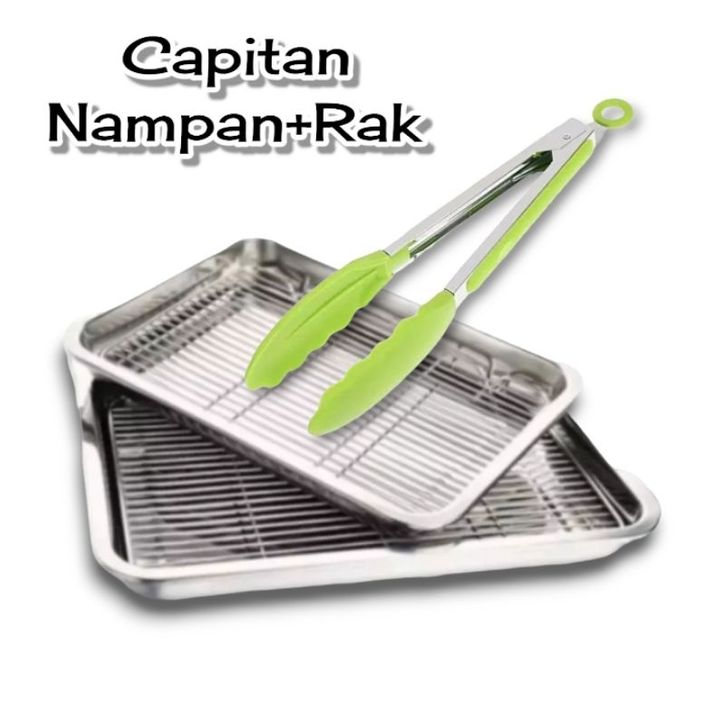 Rak Peniris Minyak Plus Nampan Stainless/Nampan Stenlis Penyaji makanan Anti Karat