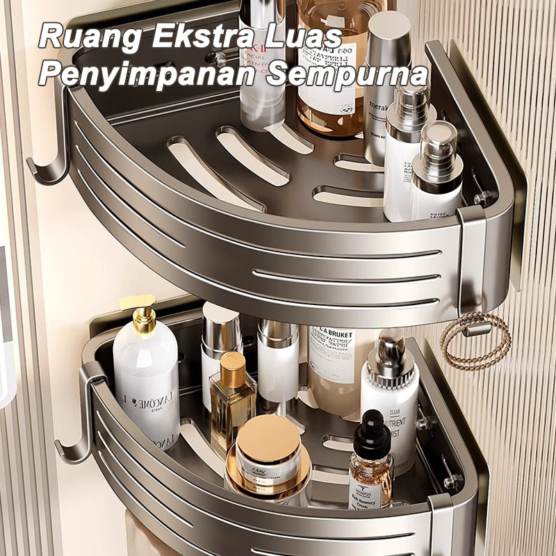 Rak Sudut 3 Lapisan Aluminum Serbaguna | Rak Gantung Tempel Dinding Multifungsi Kamar Mandi