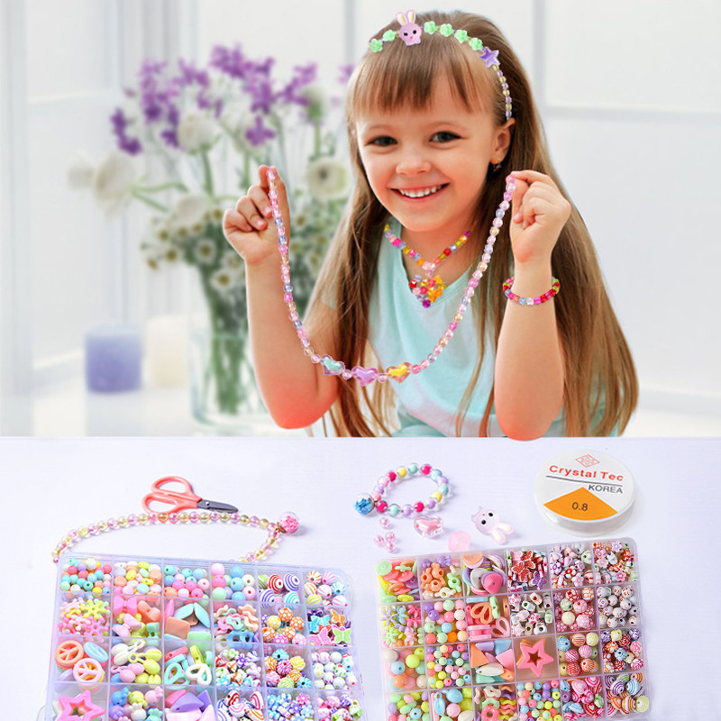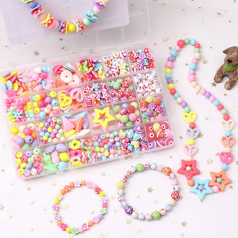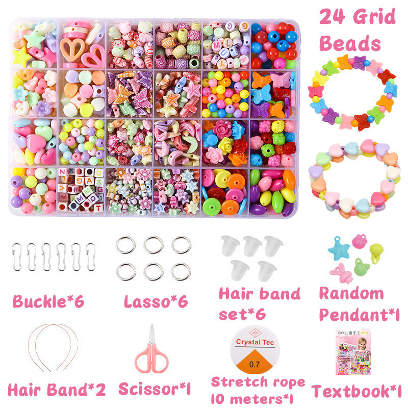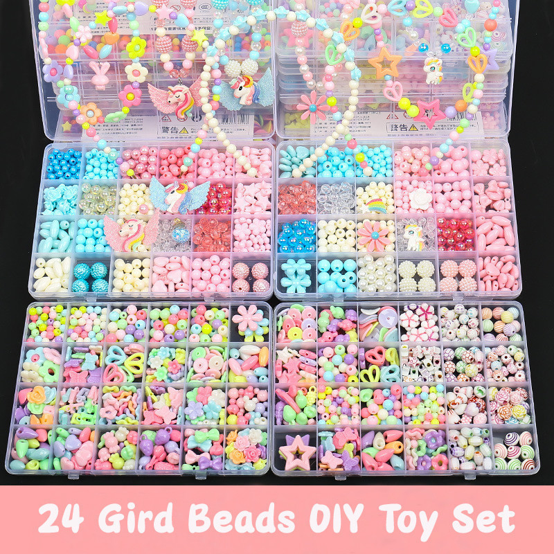 24/10 Grid DIY Set Manik-manik Berwarna untuk Pembuatan Gelang & Kalung dan Kerajinan Mainan Seni Manik-manik Buatan Tan