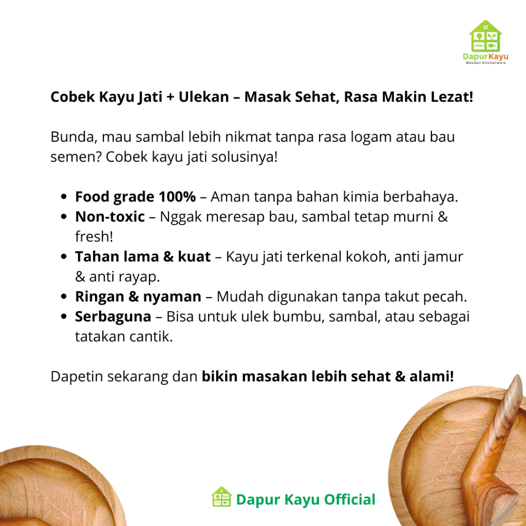 Set Cobek Kayu Jati (Cobek+Ulekan) Foodgrade Awet Anti Jamur