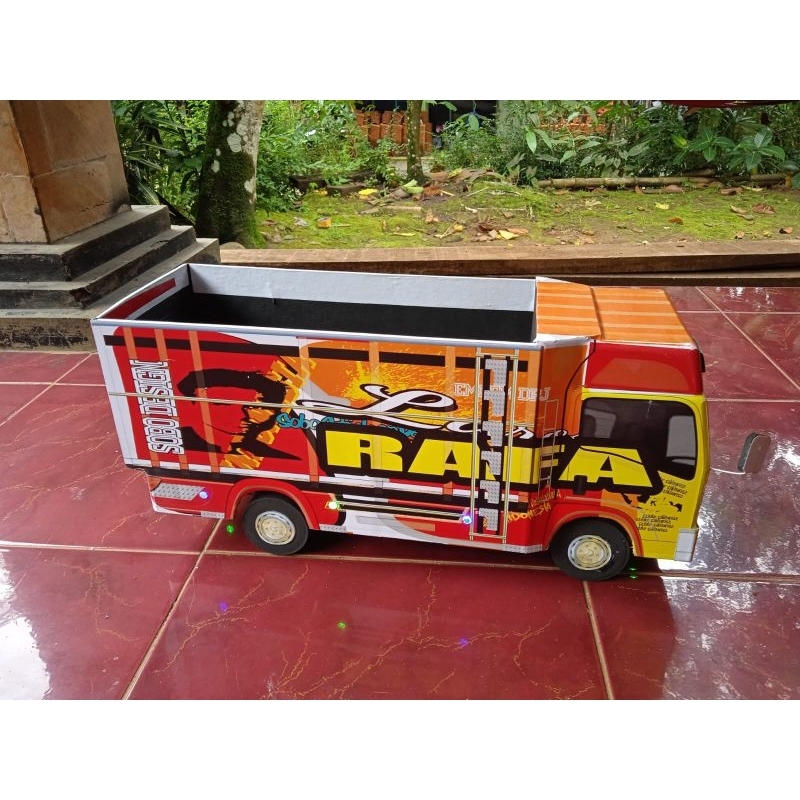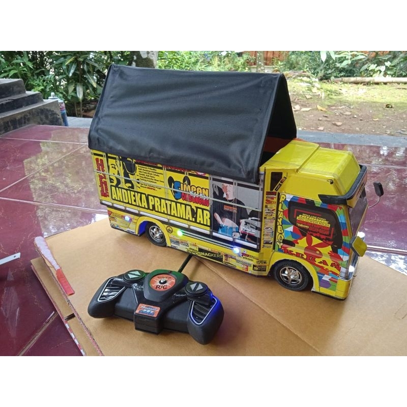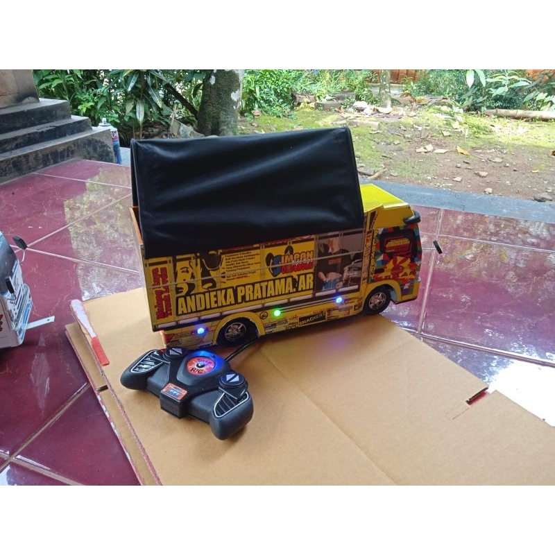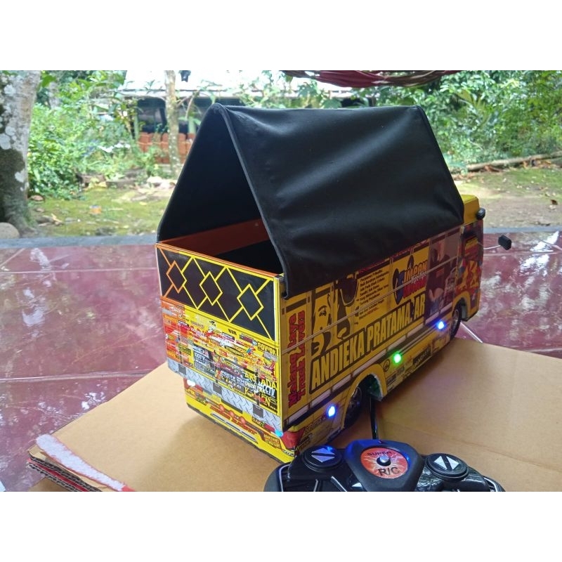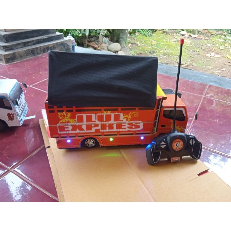 Miniatur truk oleng canter rc remot control batre pake lampu leed RGB bonus terpal