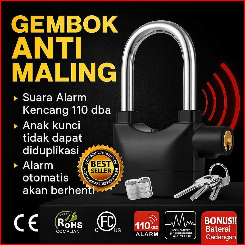 Gembok Alarm Anti Maling Suara Kencang Untuk Motor Dan Pagar Terbuat Dr Bahan Antikarat Berkualitas