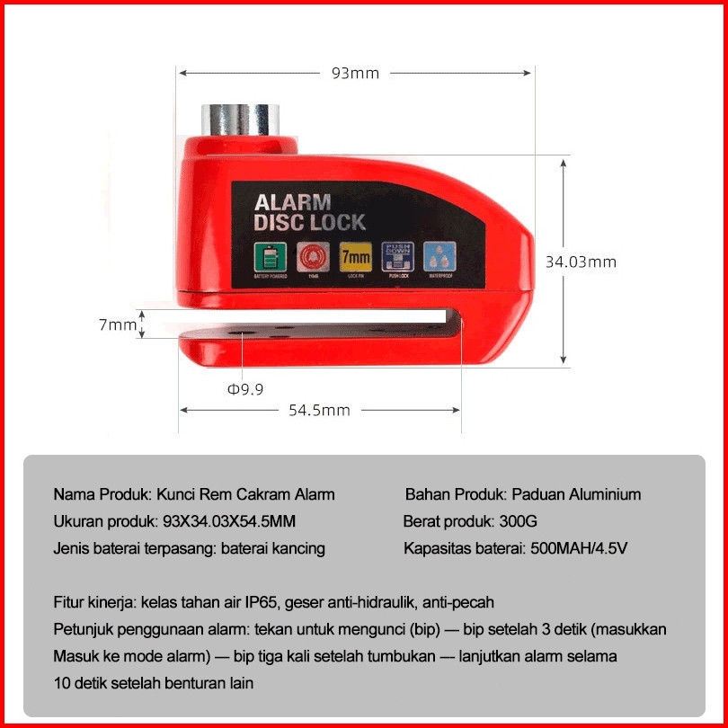 Gembok Cakram Alarm Disc Lock Kunci Alarm Gembok Motor Anti Maling