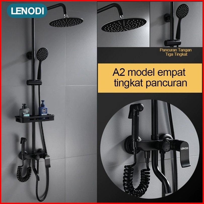 Lenodi Sus304 Shower Set Kamar Mandi Rain Shower Keran Cabang - Paket Lengkap Shower Kotak Bulat Bahan Abs Dan Stainless