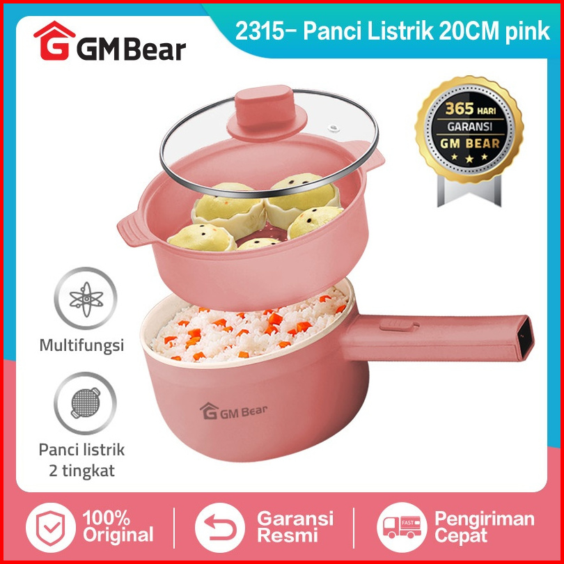 Gm Bear Panci Listrik Serbaguna 2l 2315 - Kompor Listrik Panci Penggorengan Listrik Panci Elektrik Free Steamer Pink