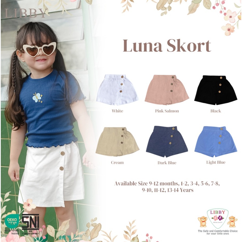 LIBBY Luna Skort Anak Perempuan Polos Rami 9 Bulan - 14 Tahun (1 PCS) Rok Celana