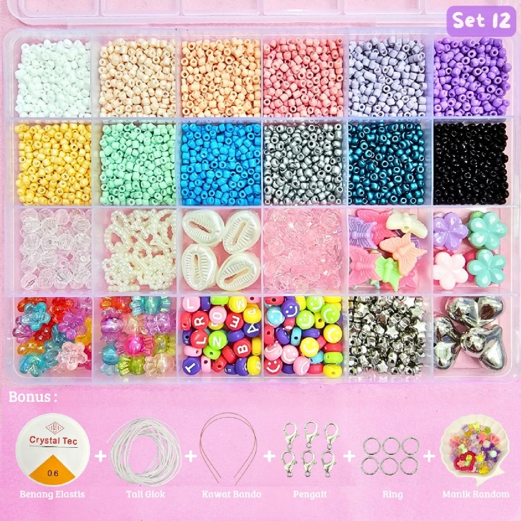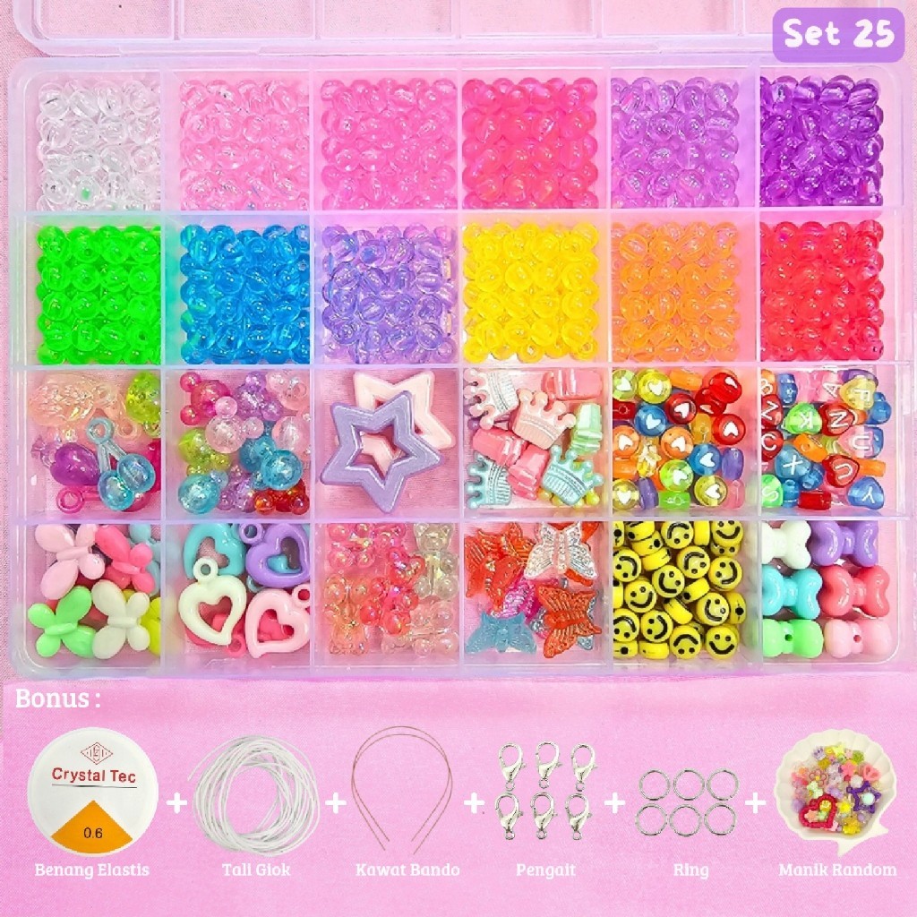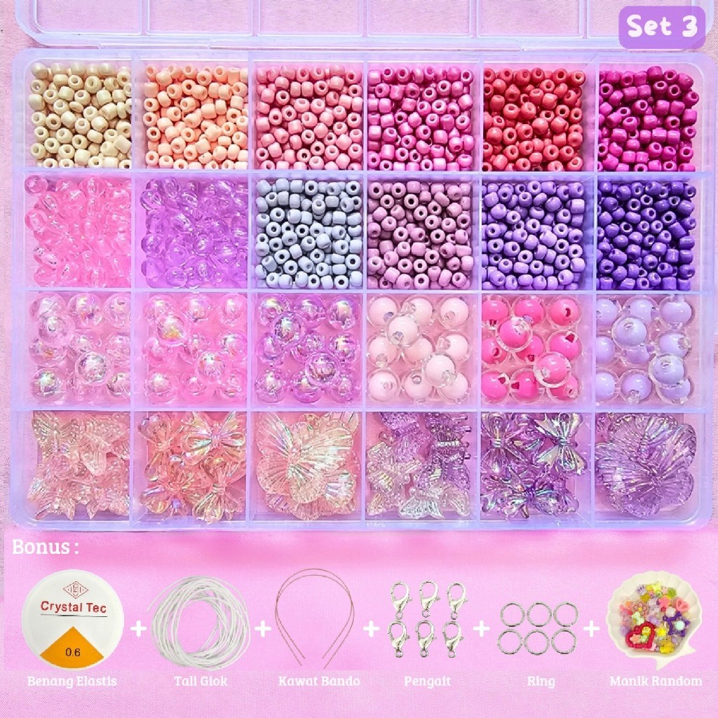 Paket Set DIY Mote DIY Manik Manik Set Aesthetic - 1 Set DIY Manik Manik - Manik Manik 1 Set Kotak Lengkap - (BONUS Bena
