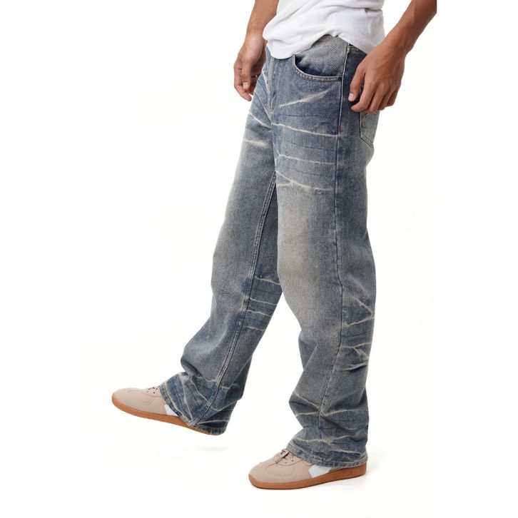 PROMO Arifan Makmur Celana Jeans 15 Oz Denim Pria Baggy Pants blue garis idikl