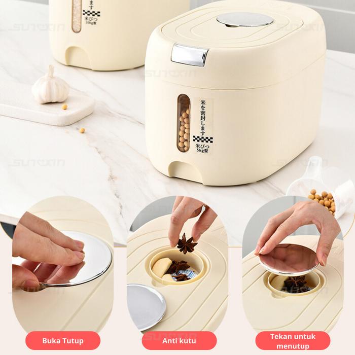 SUNXIN - Dispenser Beras C05/ Rice Dispenser Tempat Wadah Penyimpanan Beras - 5 kg Cream