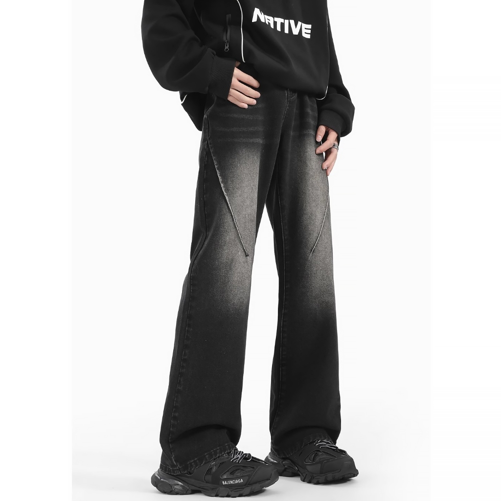 Celana Jeans Gombrong Skena Wide Legs Loose Denim Warna Hitam Whisker / Celana Baggy FASHION