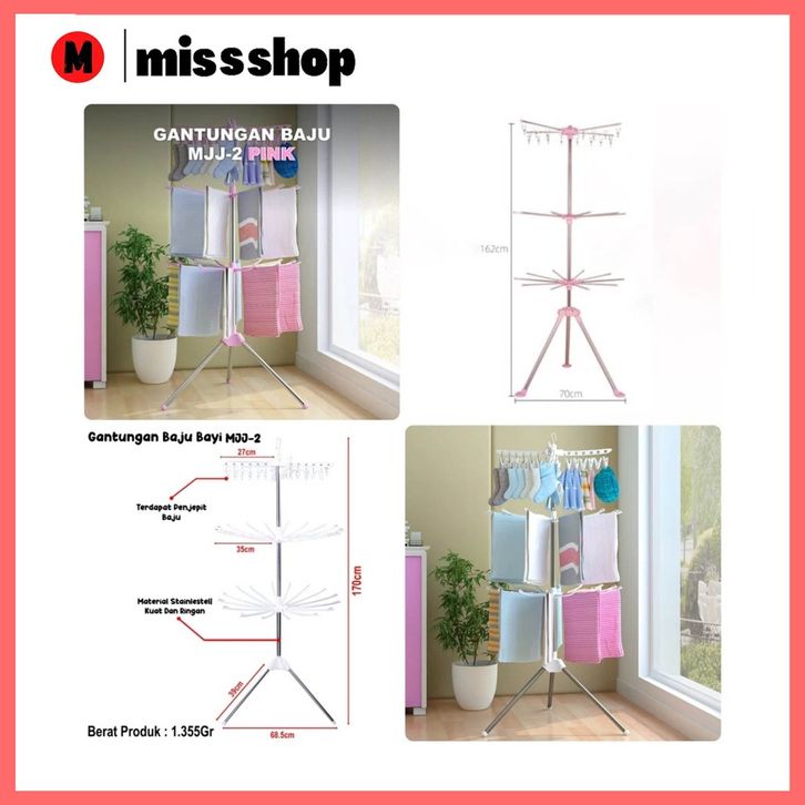 PROMO (MS) Jemuran Menara Rak Jemuran Baju Bayi Lipat Rak Susun Handuk Foldable Hanger 10 Jari-Jari