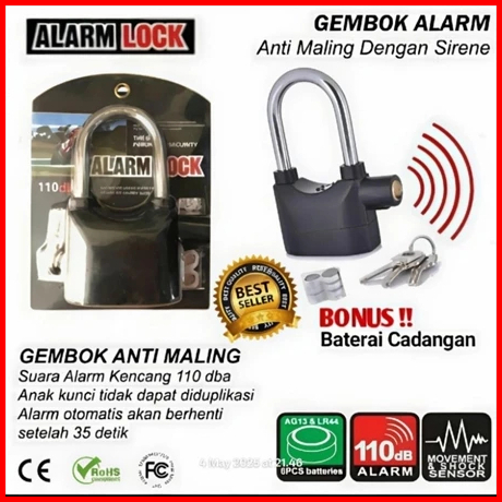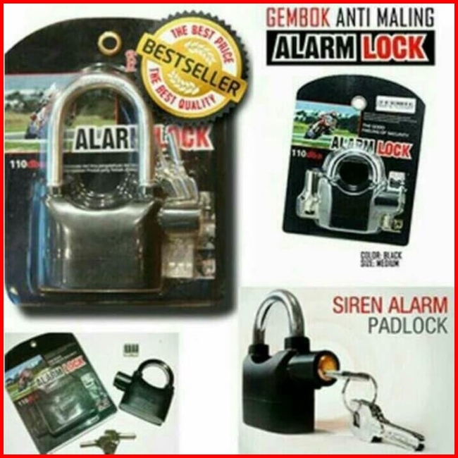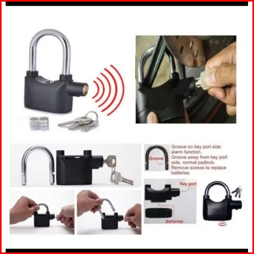 Gembok Alarm Anti Maling Suara Kencang Untuk Motor Dan Pagar Terbuat Dr Bahan Antikarat Berkualitas