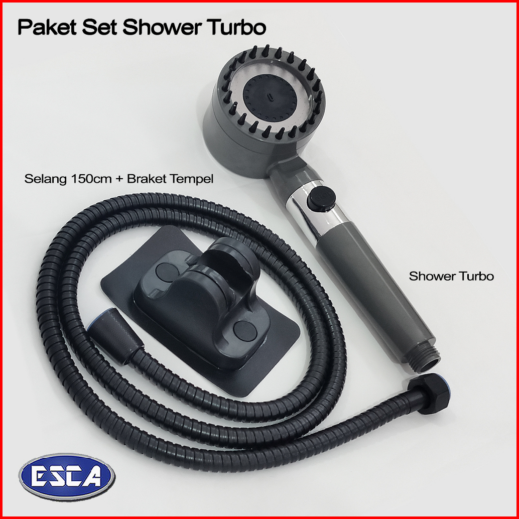 Paket Shower Turbo 4 Mode Kamar Mandi Braket Tempel Selang 150cm Tekanan Air Besar