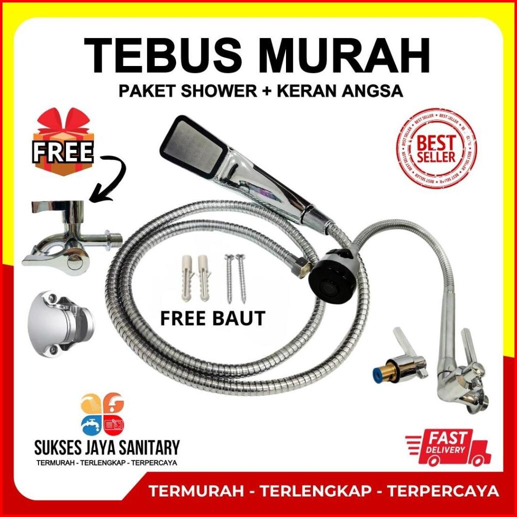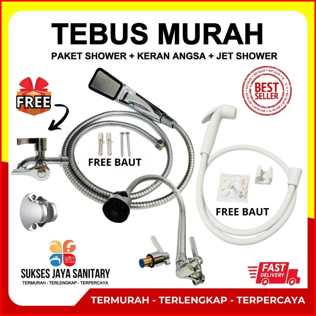 Tebus Murah Paket Lengkap Hand Shower 300 Lubang Kran Angsa Fleksibel Tembok Sink Jet Shower Toilet