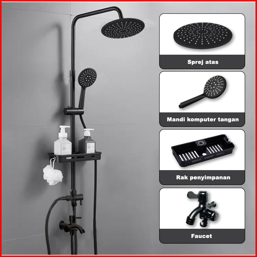Sus304 Shower Set Kamar Mandi Rain Shower Keran Cabang - Paket Lengkap Shower Kotak Bulat Bahan Abs Dan Stainless Shower