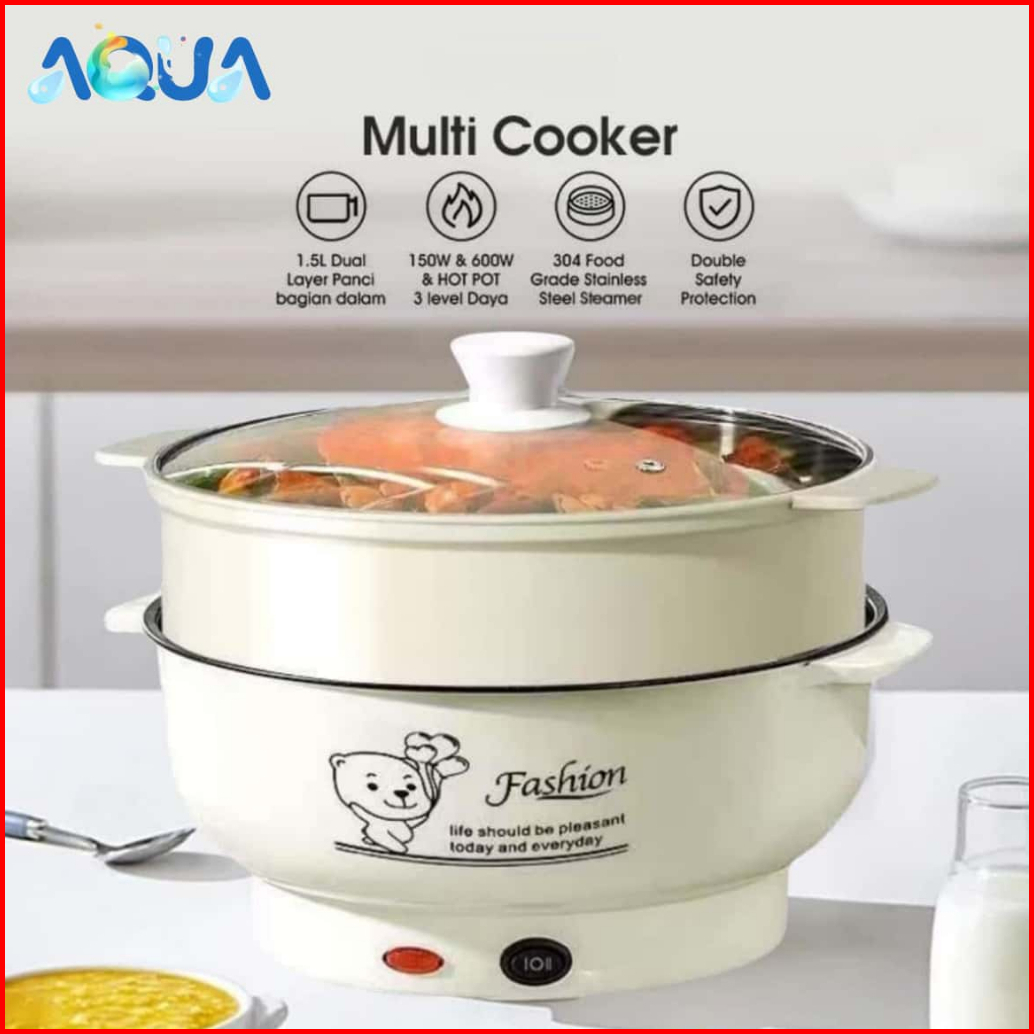 Aquapanci Listrik Kapasitas 1.5l Panci Serbaguna Anti Lengket Dengan Kukusan 2 Mode Panas