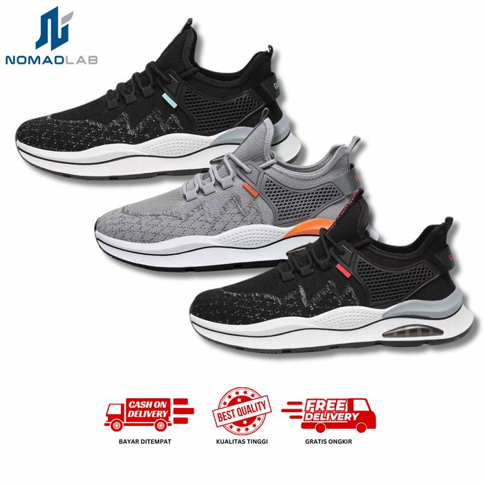 Nomad Maxx Sepatu Sneakers Fashion Running S22 Shoes Casual Karet Pria Sport Hitam Olahraga Kasual Kasual Black