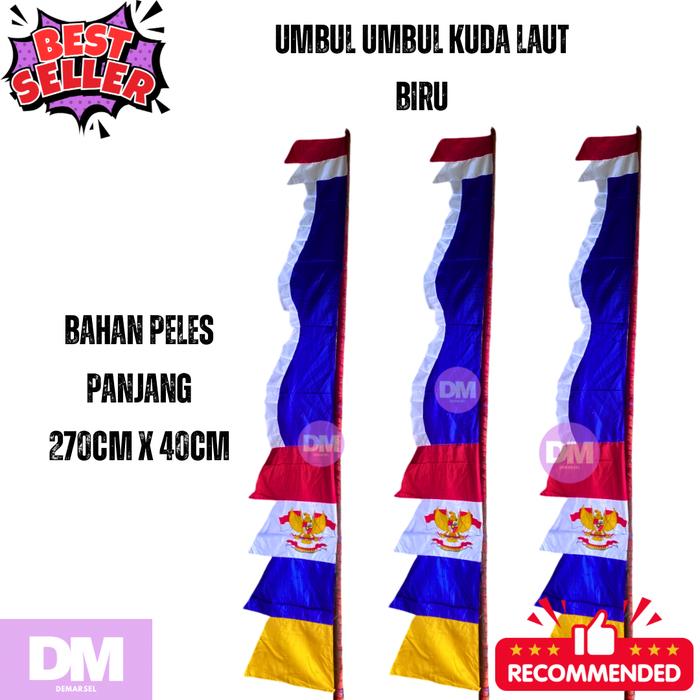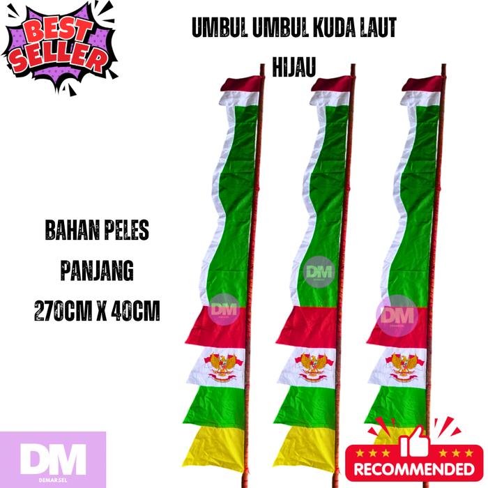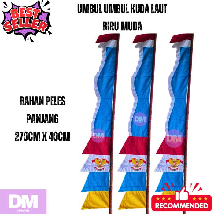 Bendera Umbul-Umbul Kuda Laut warna warni Dekorasi -27m x 40cm - Polyester - Rempel - Pres Garuda - MERAH PUTIH