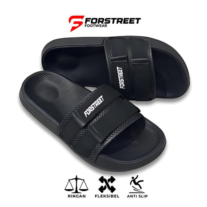 FORSTREET Sandal Slop Karet Hitam Anti Slip Sendal Selop Kekinian Pria Wanita skena antiselip simpel Shoes