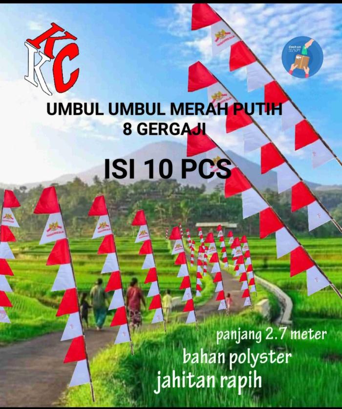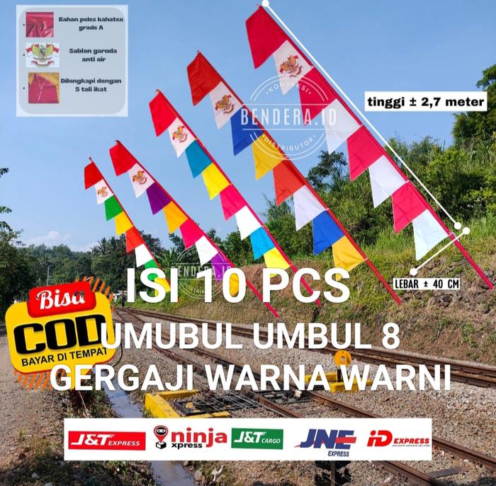 bendera umbul umbul warna warni isi 10pcs - merah