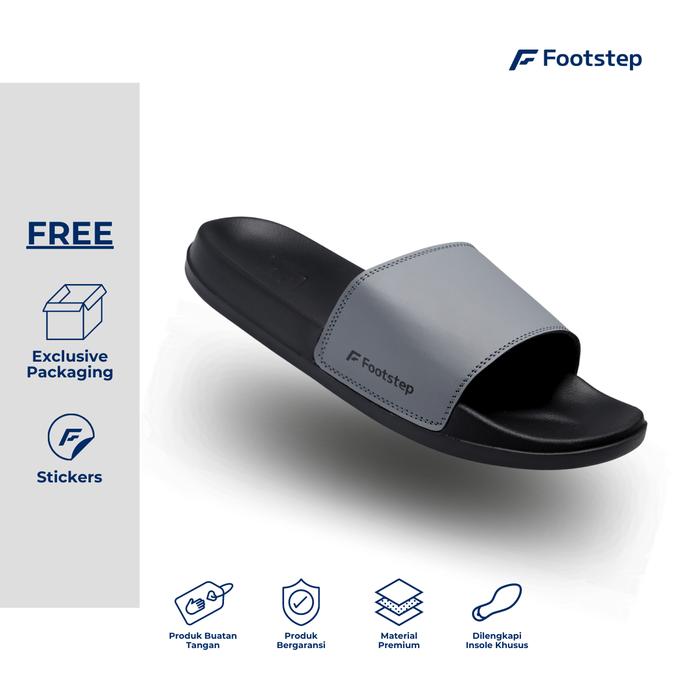 Sendal Cowok Footstep Porto Grey Slide Sandal Shoes Pria Selop Karet Black