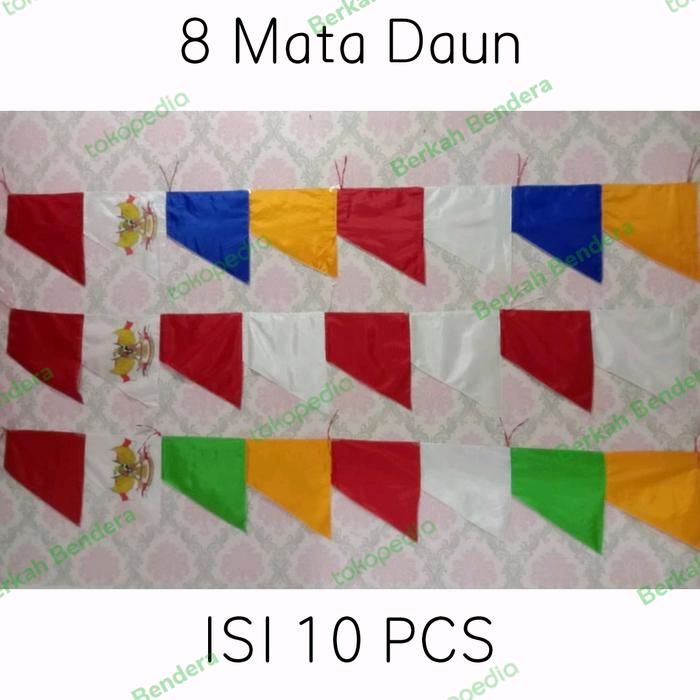 isi 10 pcs umbul umbul bendera merah putih pakai garuda warna warni - MERAH PUTIH