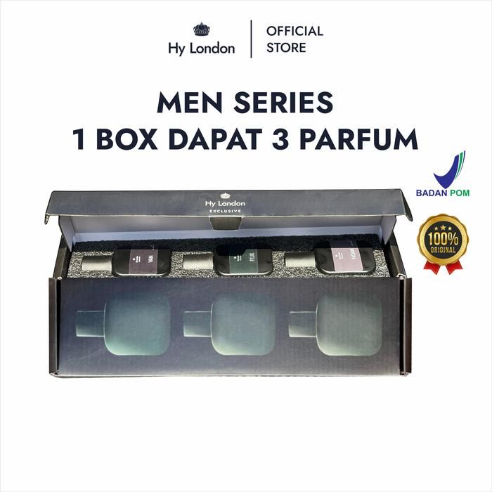 Hy London Parfum Dapat 3 Botol EDP 35ml Exclusive Box isi 3 Botol Men Series Perfume Pria Elegant Wangi - Noam 2 + Van