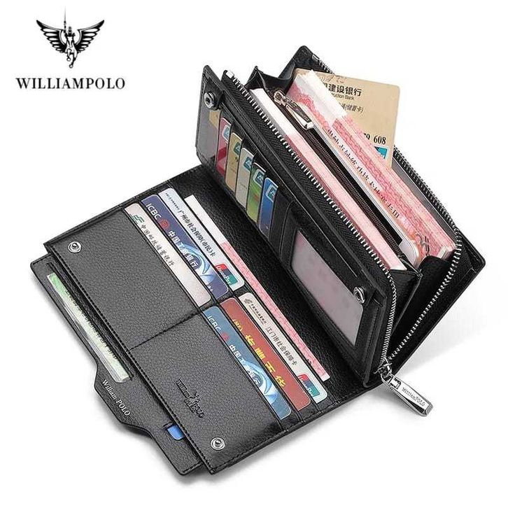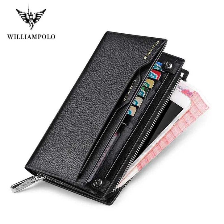 WilliamPolo Gaya Baru Fashion Pria Dompet Kulit Asli Kapasitas Tinggi Merek Ritsleting Tas Long