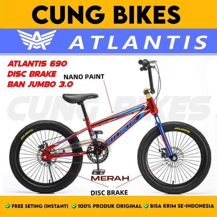 Sepeda Anak Laki BMX Atlantis 690 Ukuran 20 Inch Chrome Edition Ban Jumbo 3.0