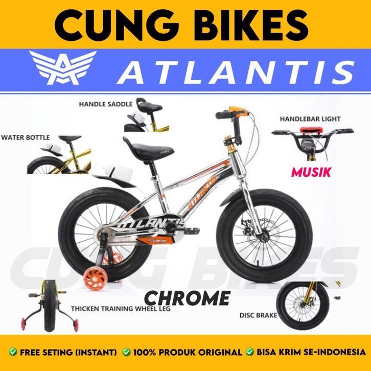 Sepeda Anak Laki BMX ATLANTIS 9.0 Chrome Usia 8-12 Tahun Musik Lampu Rem Cakram Ban Jumbo 3.0 Ukuran 12 16 18 Inch