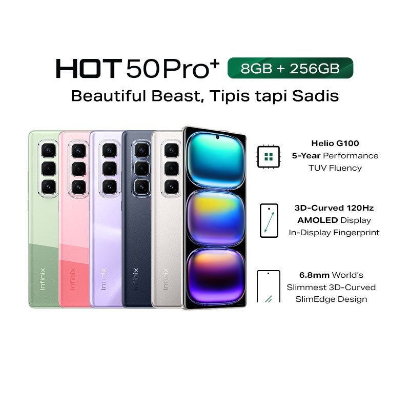 [Mall] Infinix Hot 50 Pro+ 8/256GB - Up to 16GB Extended RAM - Helio G100 - 6.78 inch 3D Curved 120Hz Amoled - 50MP - 50