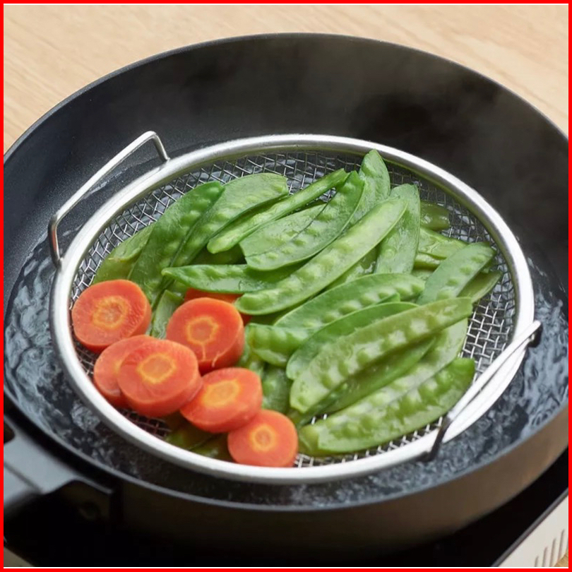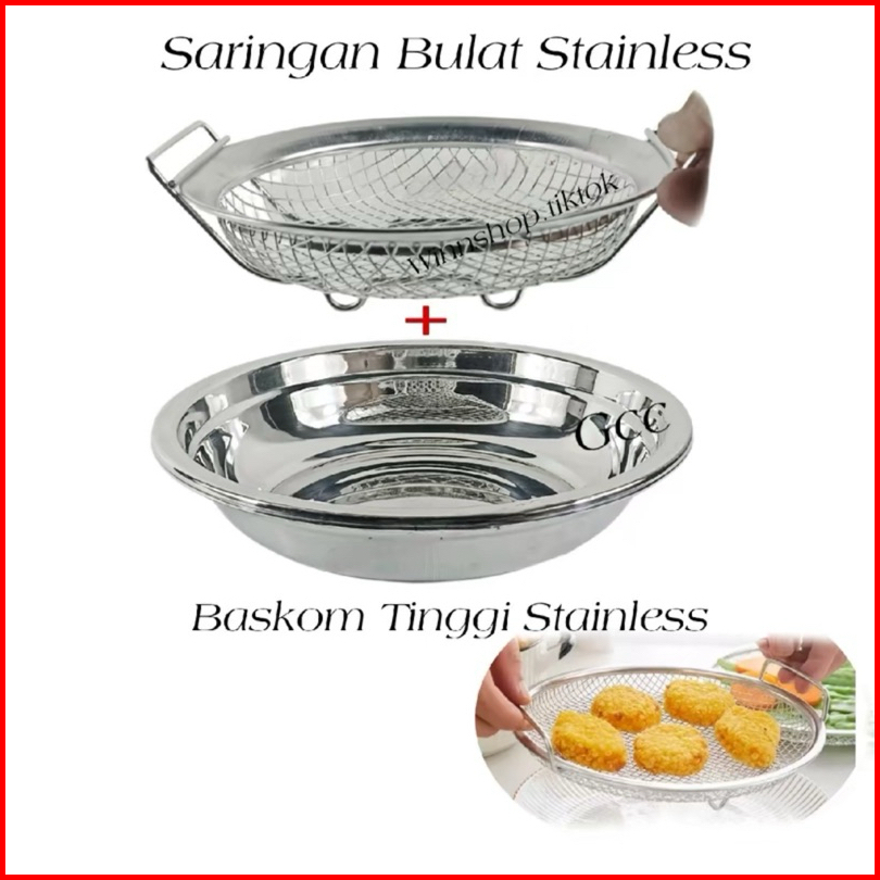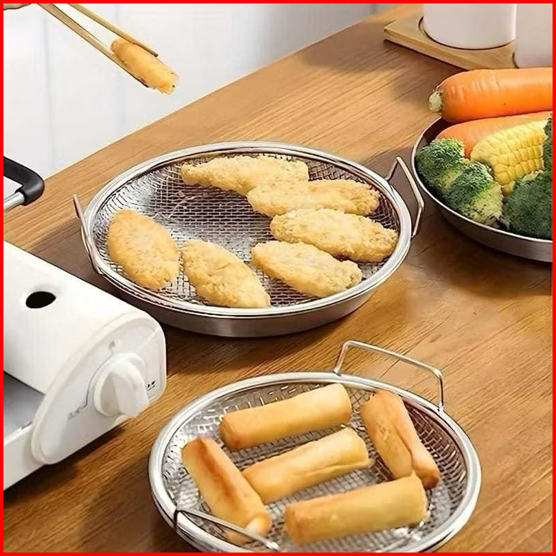 Saringan Minyak Sayur Makanan Gorengan Serbaguna Stainless Tebal Piring Tiris Minyak Saringan Kukusan Rebus Goreng Stain