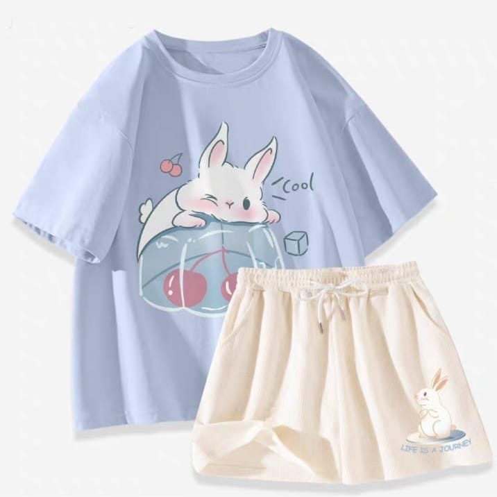 ONESET CHERRY'S RABBIT ATASAN KAOS CELANA PENDEK WANITA (V1 LIFE IS A JOURNEY || setelan wanita