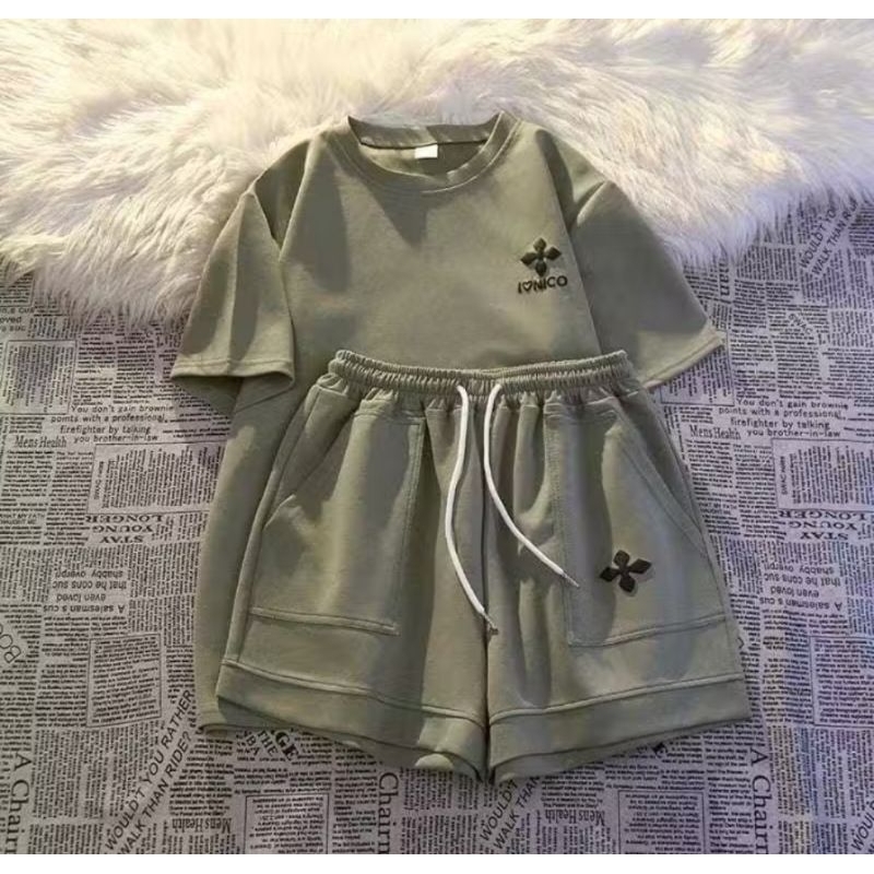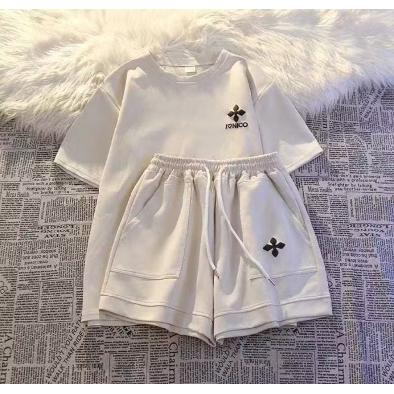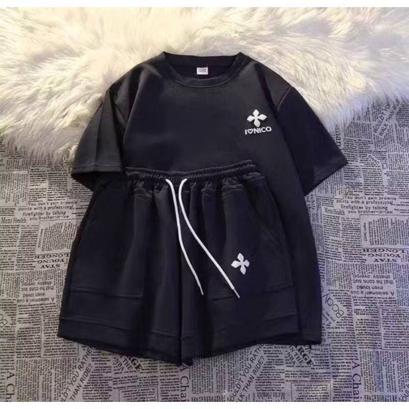 SET T SHIRT DAN SHORT PANTS KEKINIAN KAOS FULL COTTON COMBAD I LOVE NICO setelan wanita