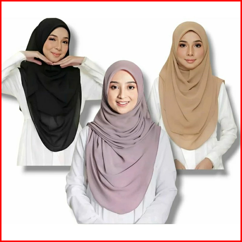 Embun Hijab Segi Empat Oval Ceruty Babydoll Premium Jilbab Curve Malay 120x120cm