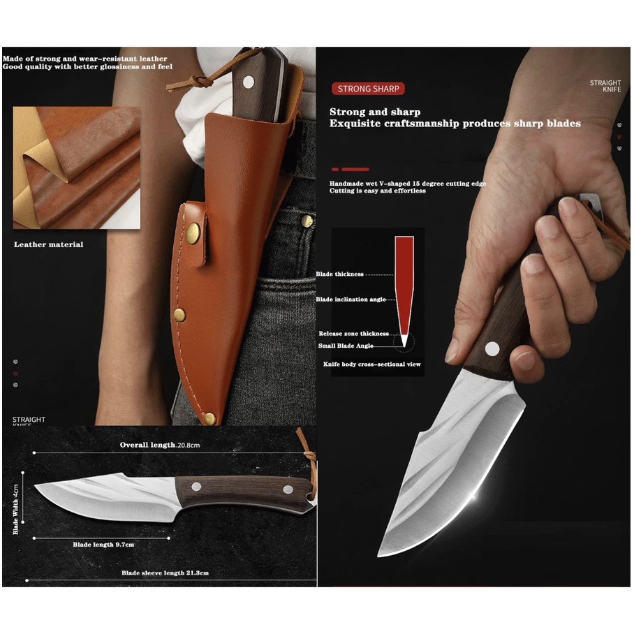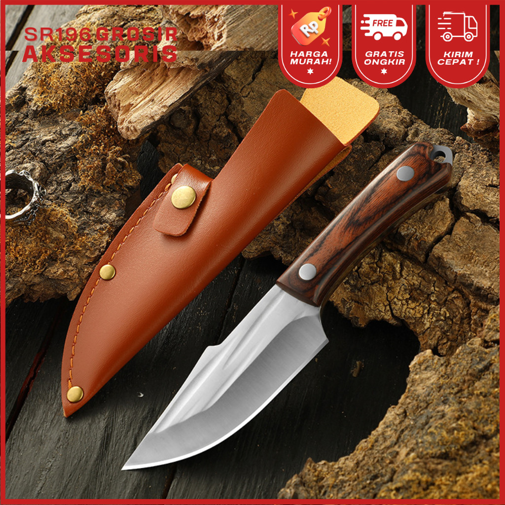 Pisau Tulang Daging Mini Tajam Pisau Camping Survival + Sarung Kulit
