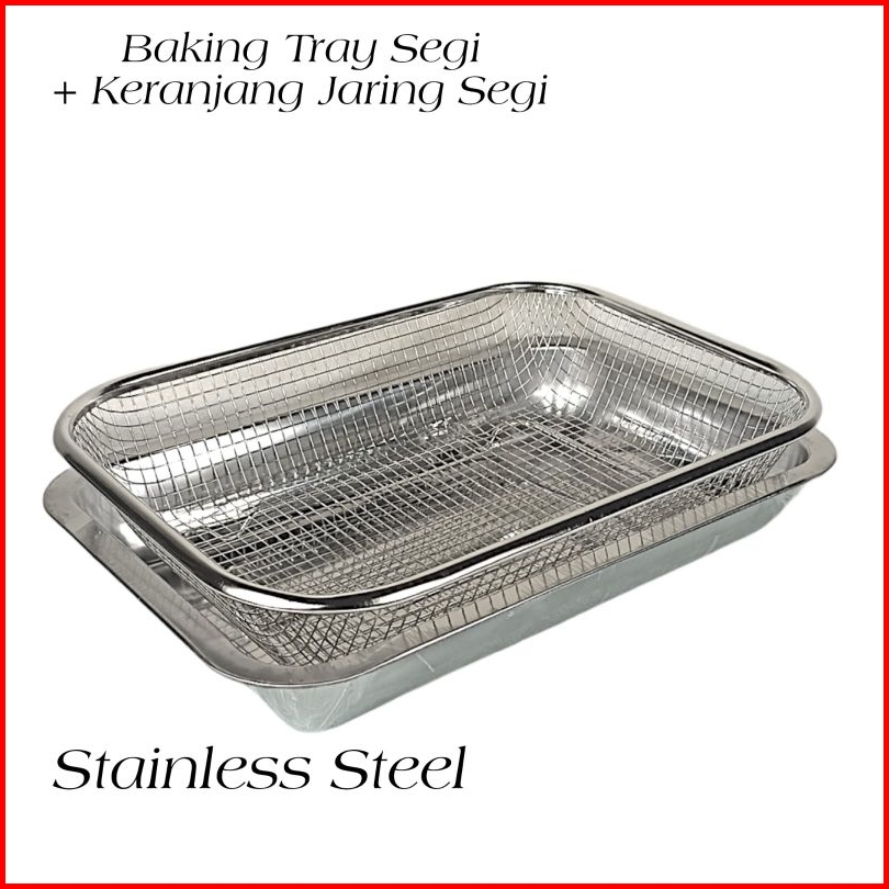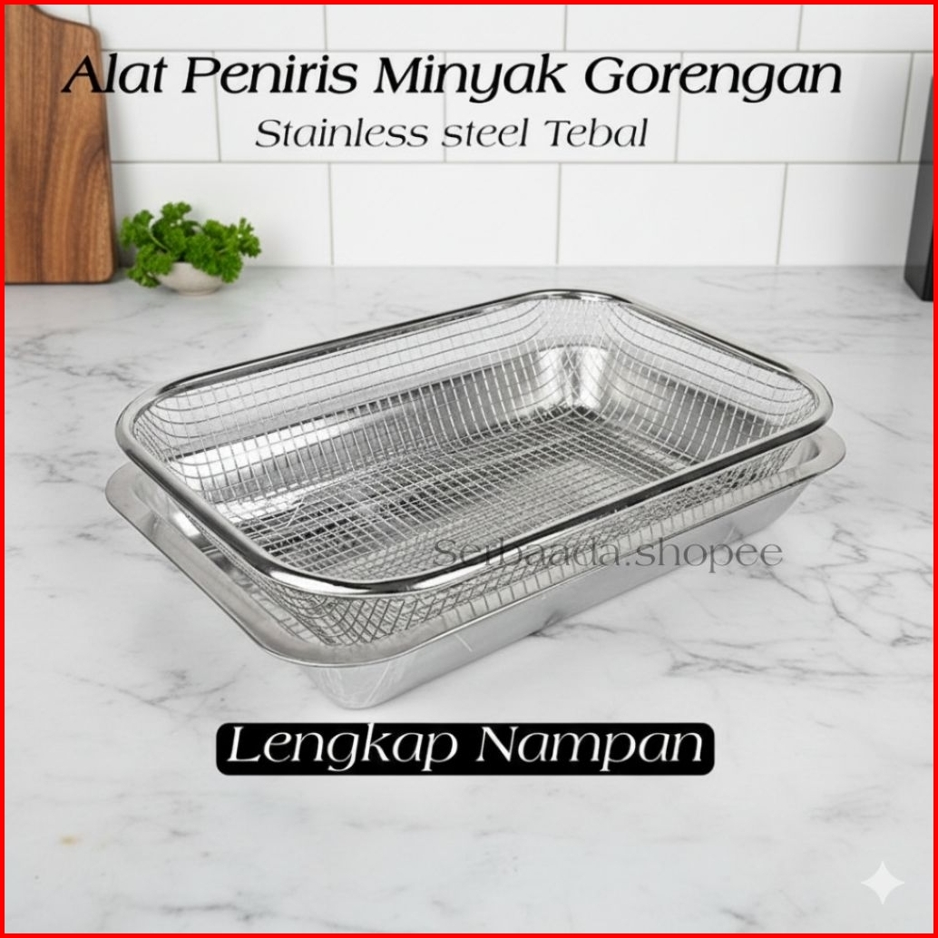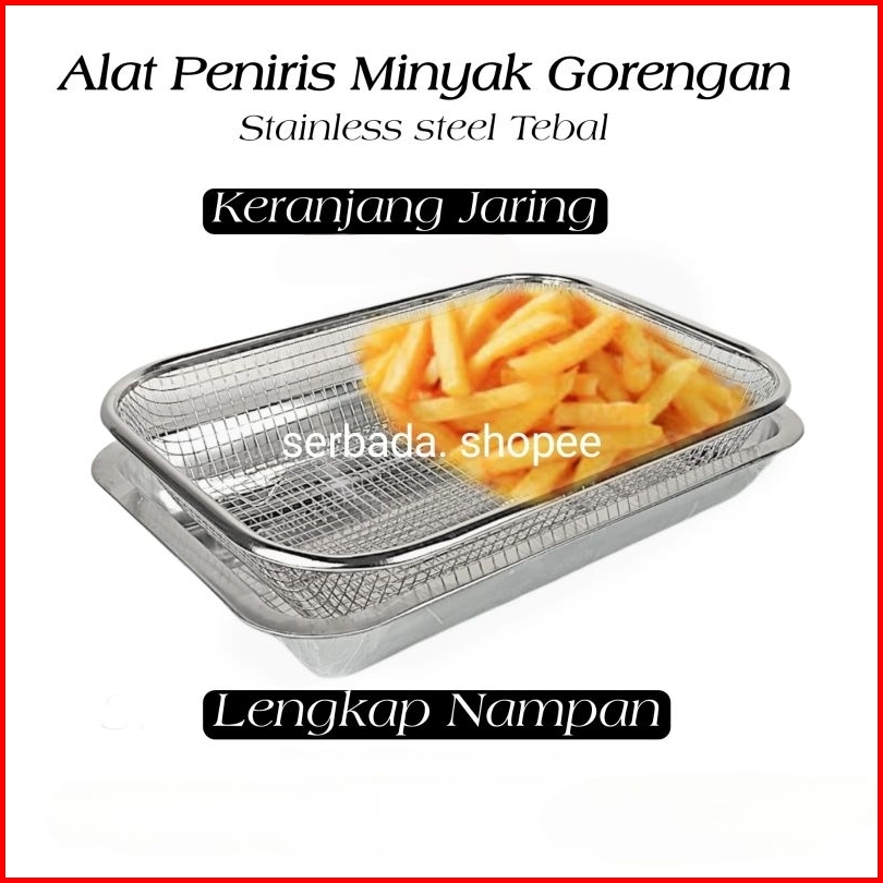 Coling Rak Peniris Minyak Gorengan Lengkap Nampan Stainless Tebal Tahan Karat Keranjang Segi Tinggi Serbaguna