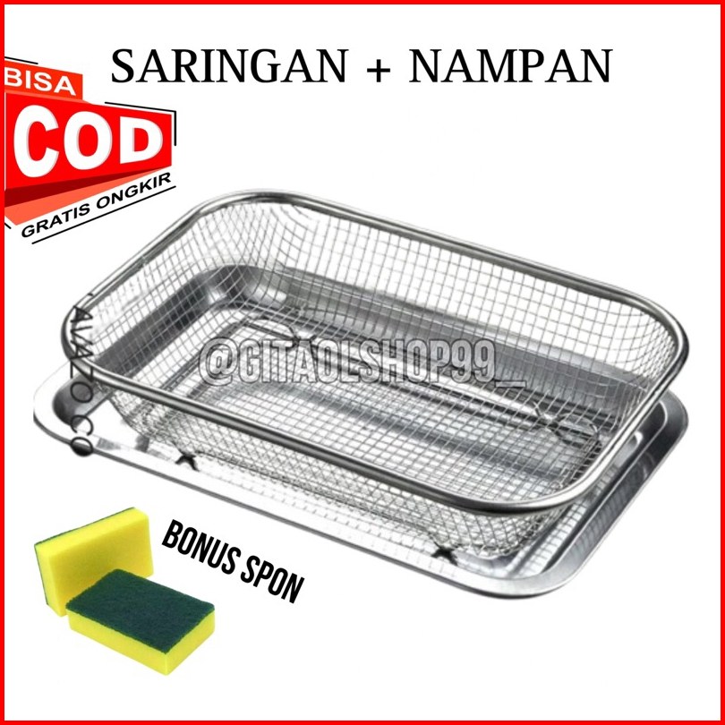 Keranjang Saringan Tinggi Stainless Steel Tebal Tahan Karat Peniris Sayur Minyak Gorengan Nampan Lengkap Keranjang Tiris