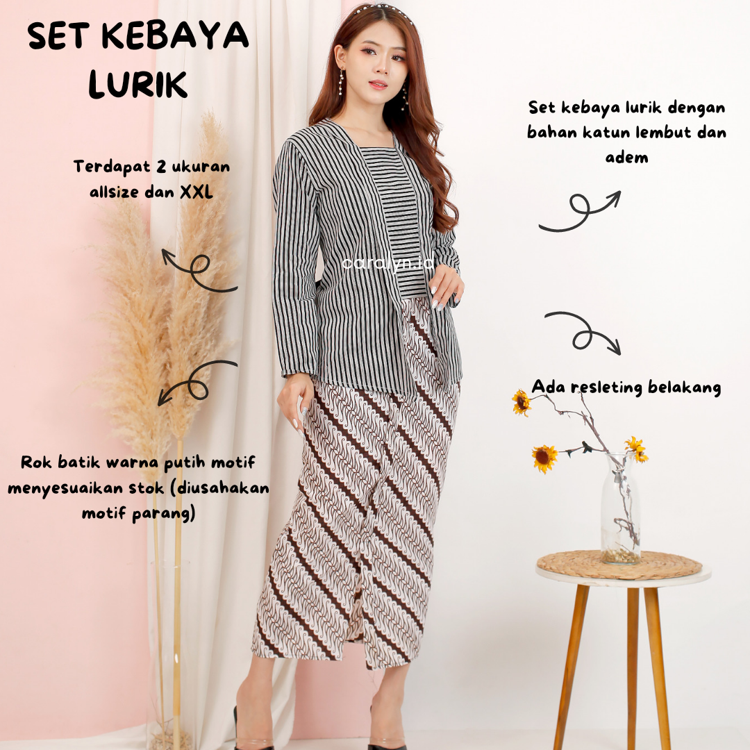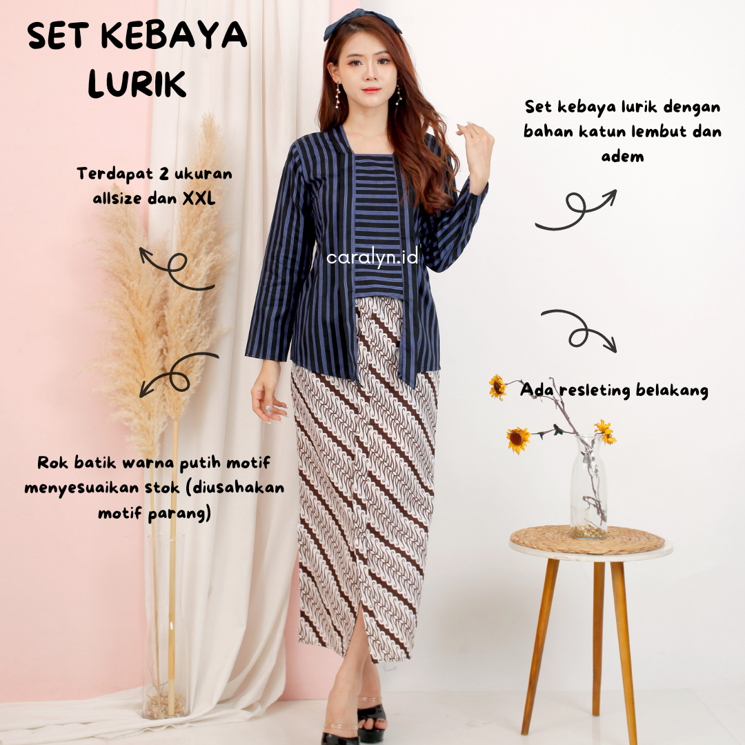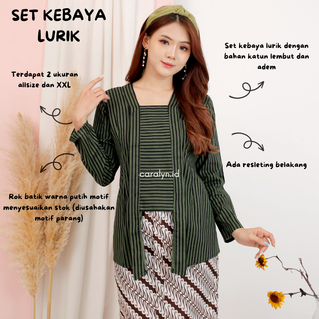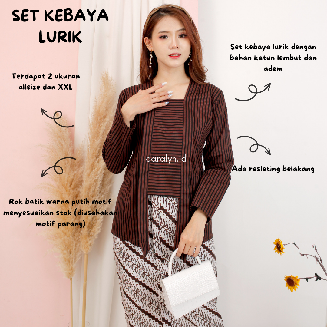 Set Kebaya Lurik Perempuan Dewasa Tenun Halus Set Rok Batik Bahan Premium Best Seller