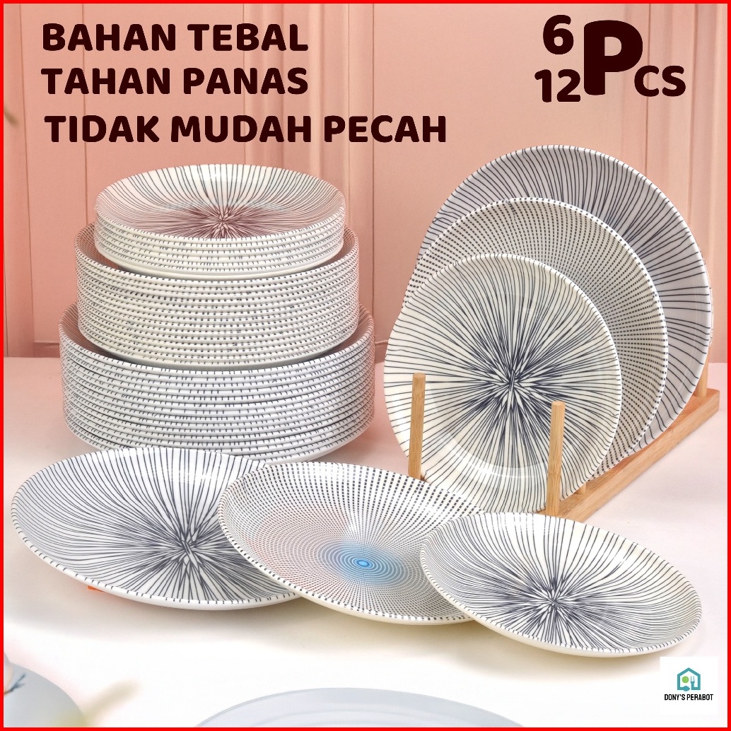 Piring Melamin Asli Keramik Iimitasi 1 Lusin 12 Pcs 7inch Tebal Anti Pecah Saji Kue Piring Spageti