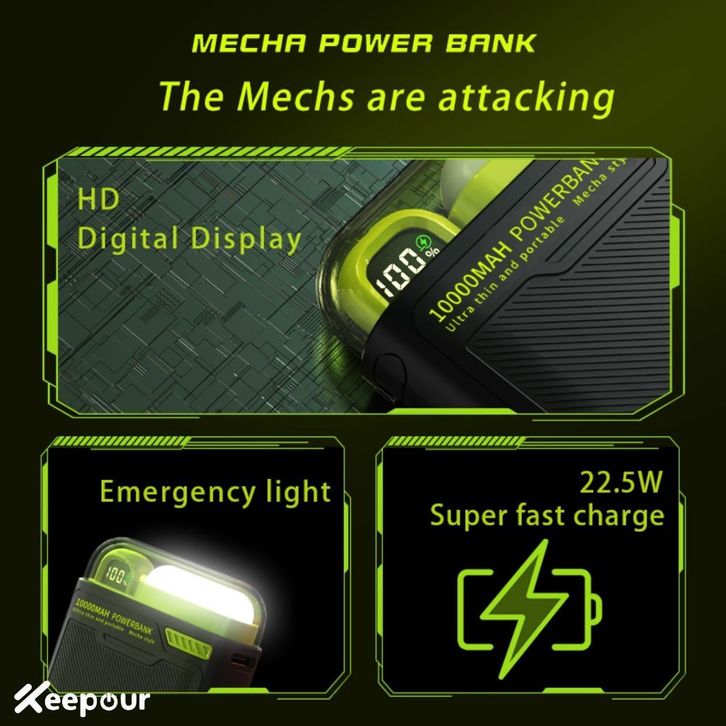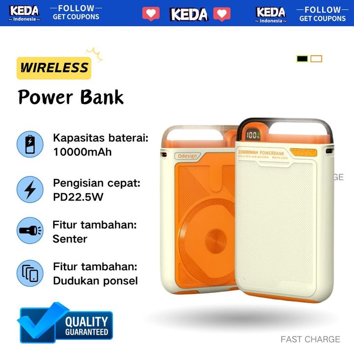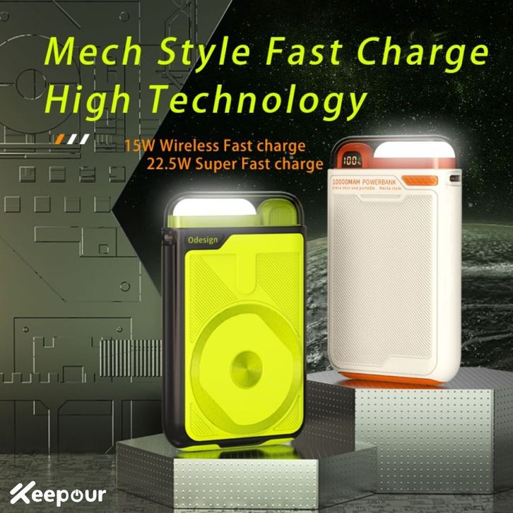 Powerbank Wireless Power Bank10000mAh PD22.5W Fast Charging with USB-A Cable LED Display Mobile phone holder