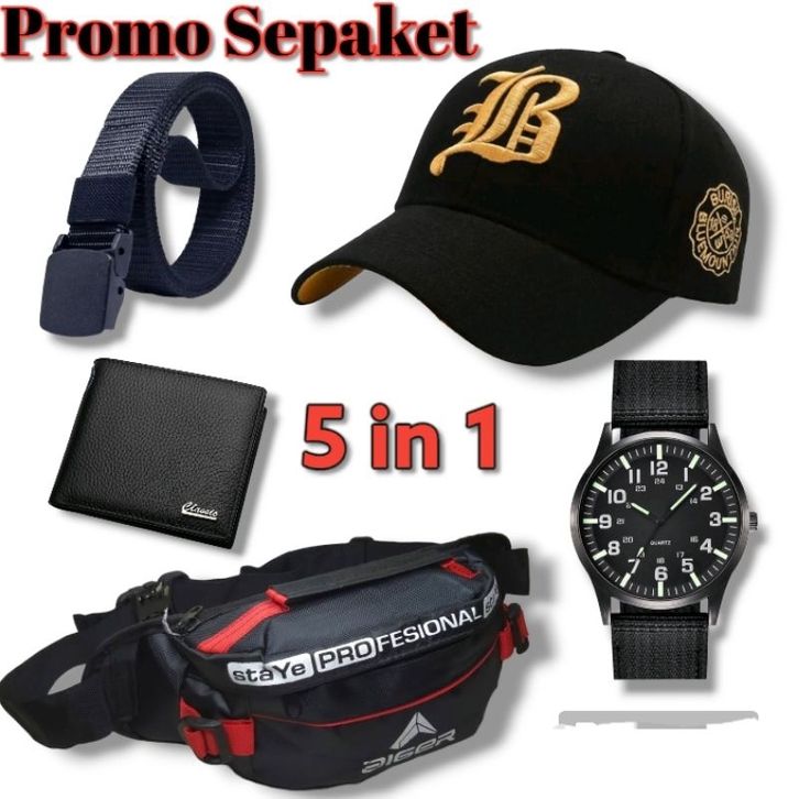 PAKET STYLE PRIA KOMPLIT 5 IN 1 - TAS SALEMPANG UNISEX GRATIS IKAT PINGGANG CANVAS GRATIS JAM ANALOG CANVAS GRATIS DOMPE
