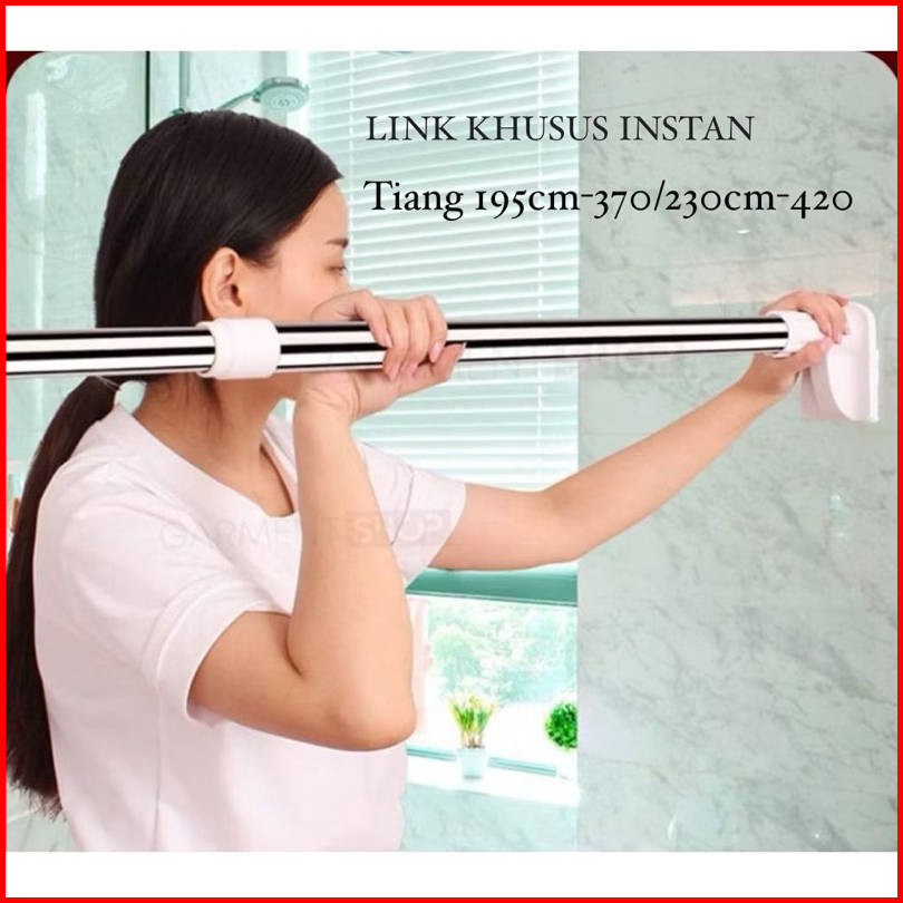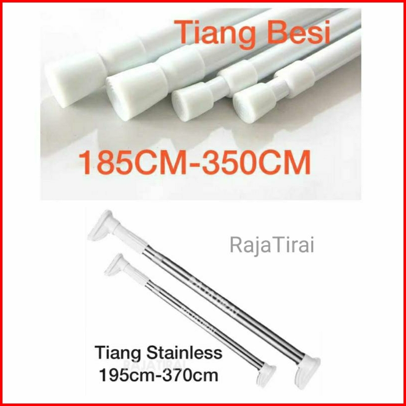 Tiang Stainless Jemuran160cm-500cm Tiang Hordeng Flexibel Penyegakat Pembatas Ruangan Tanpa Paku
