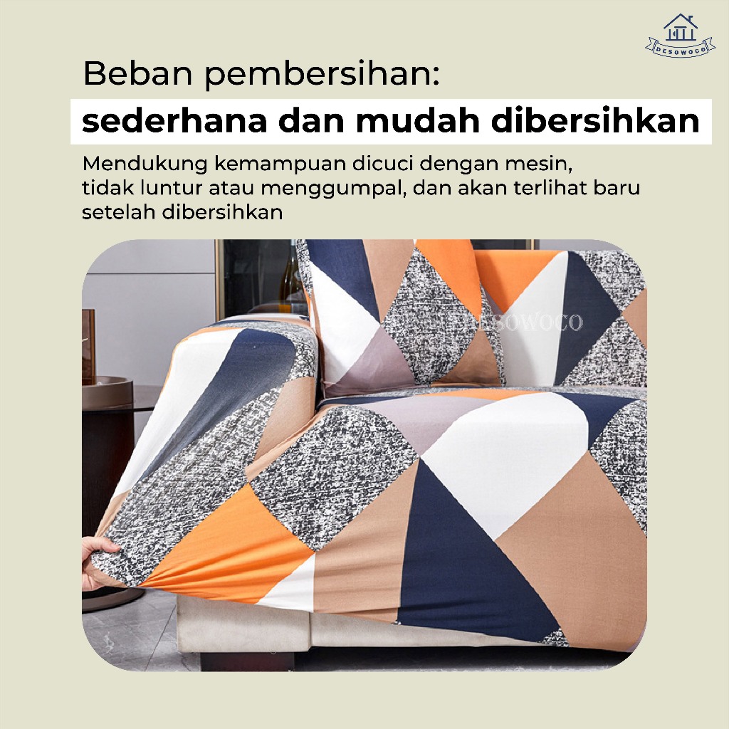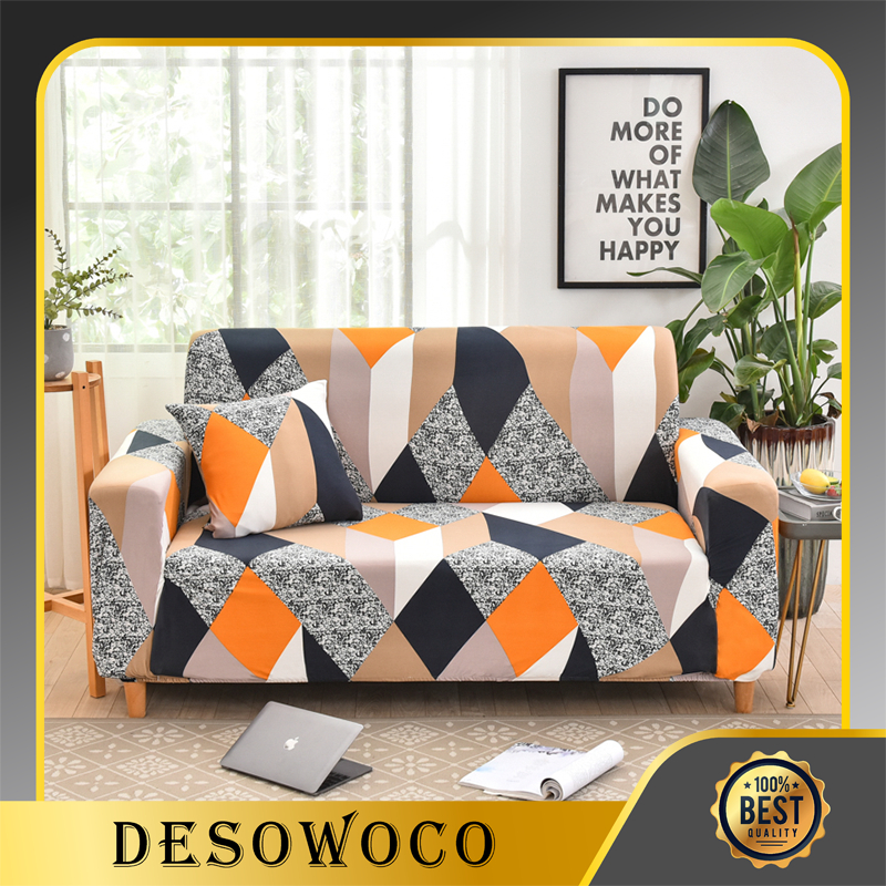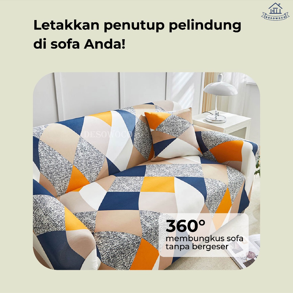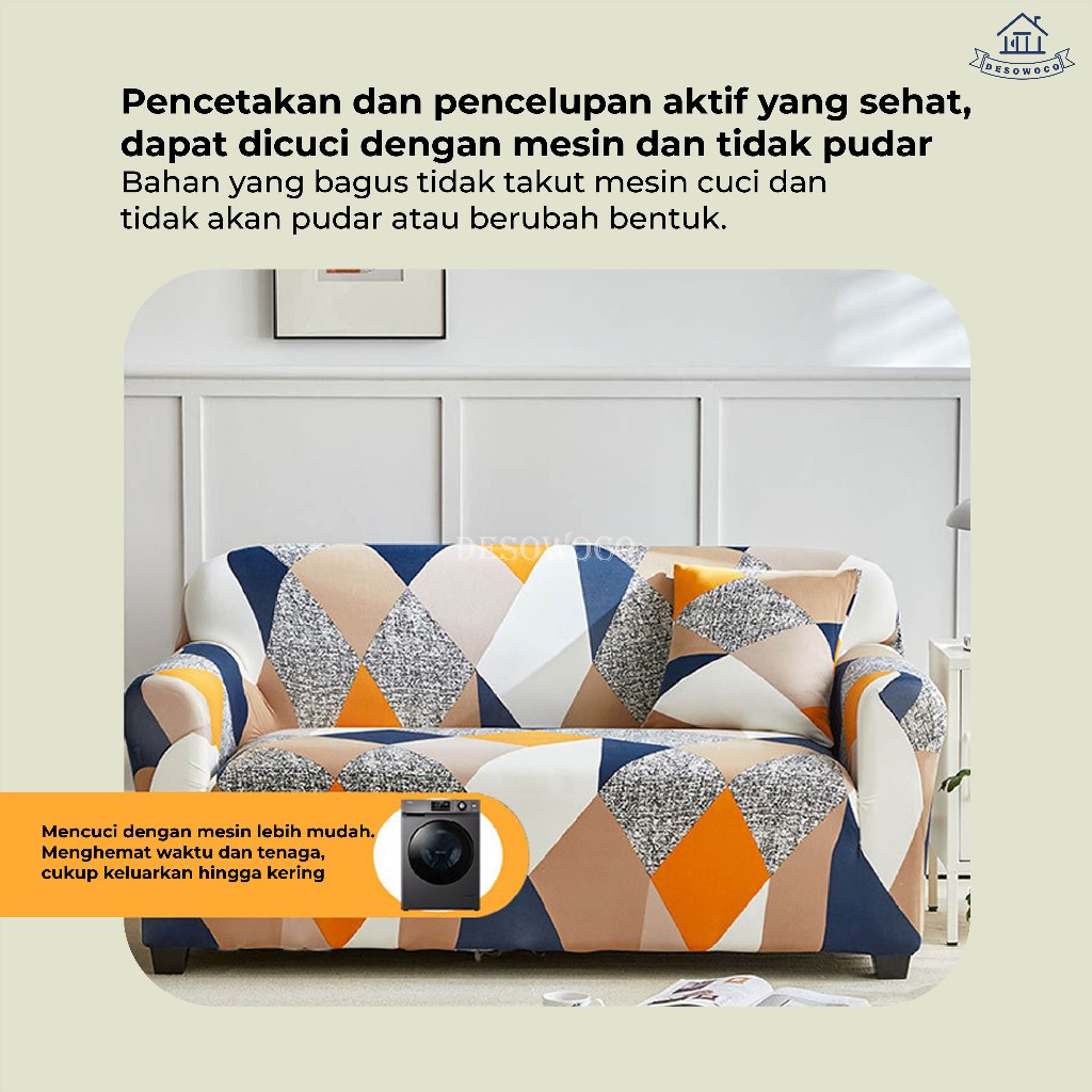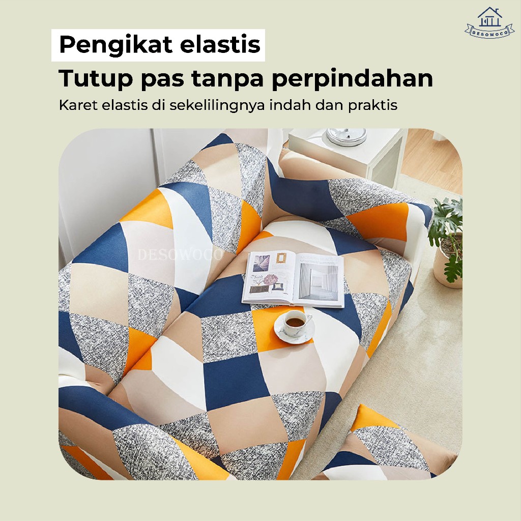 DESOWOCO COVER SOFA SARUNG SOFA ELASTIC ELASTIS PATTERN MOTIF MENARIK/ ANTI-SELIP COVER SOFA BED 1/2/3/4 SEATER PENUTUP SOFA SARUNG BANTAL SOFA