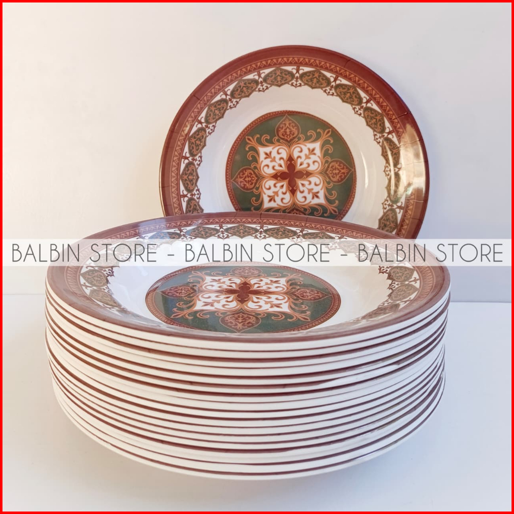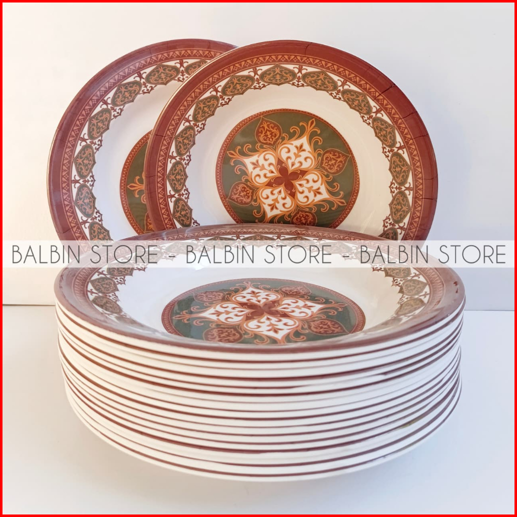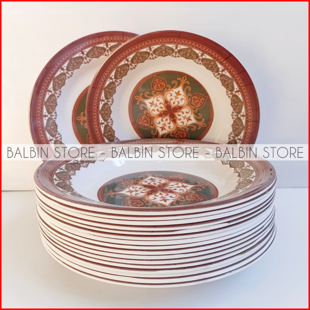 Promo Satu Lusin Piring Melamine Lebar 23.cm Motif Batik List Kualitas Food Grade