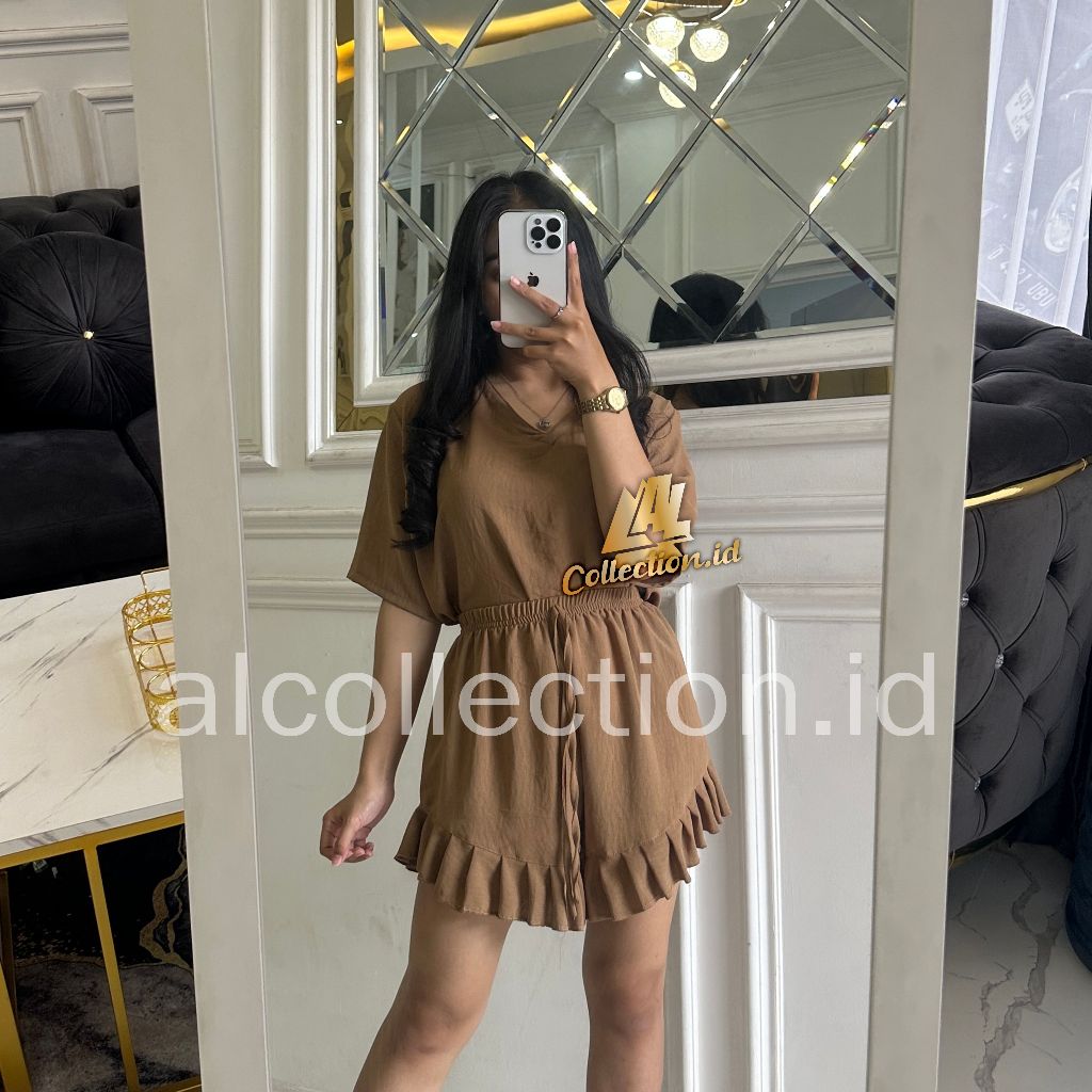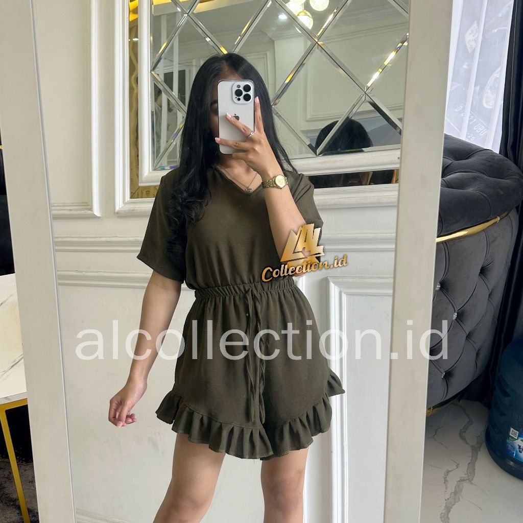 SETELAN PENDEK RUFFLE WANITA TERMURAH CRINKLE AIRFLOW ONESET CELANA HOTPANT setelan wanita
