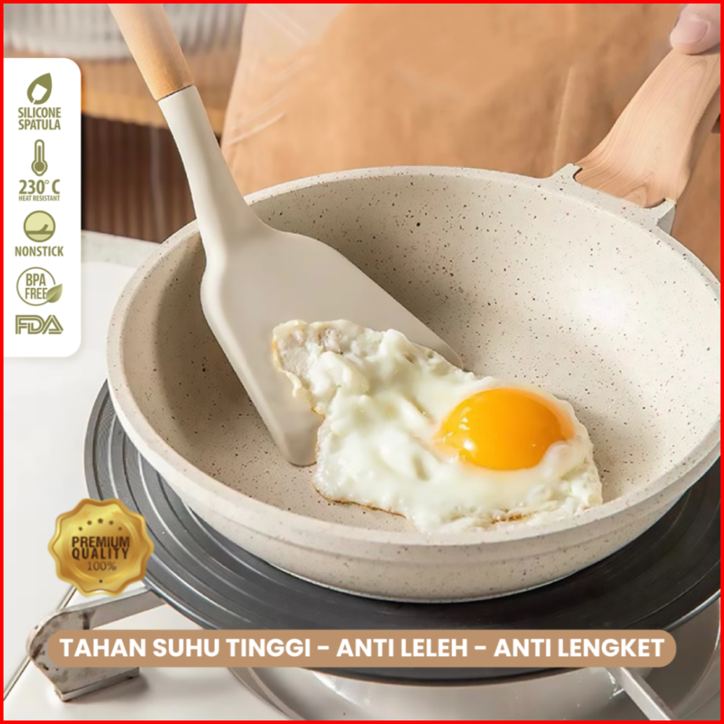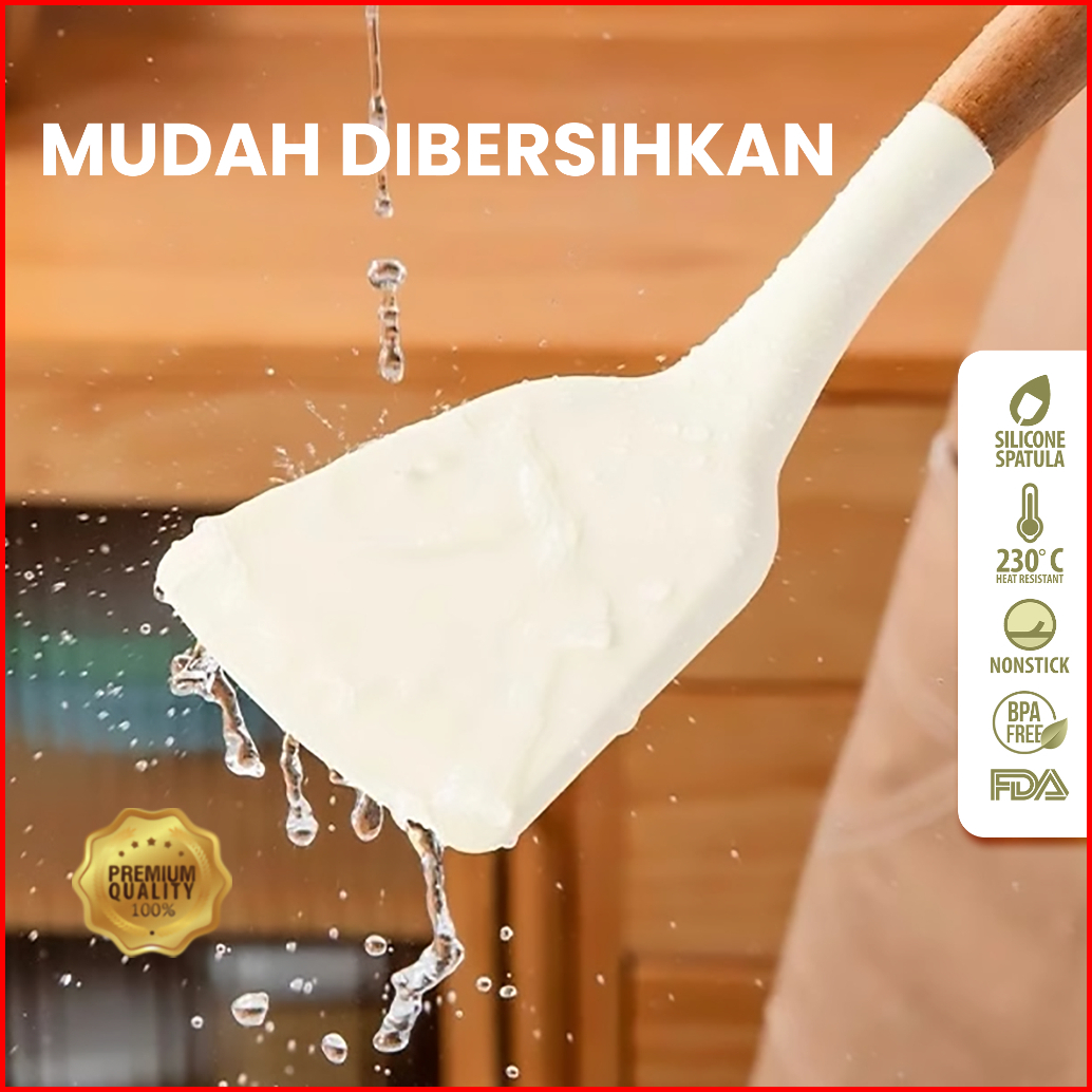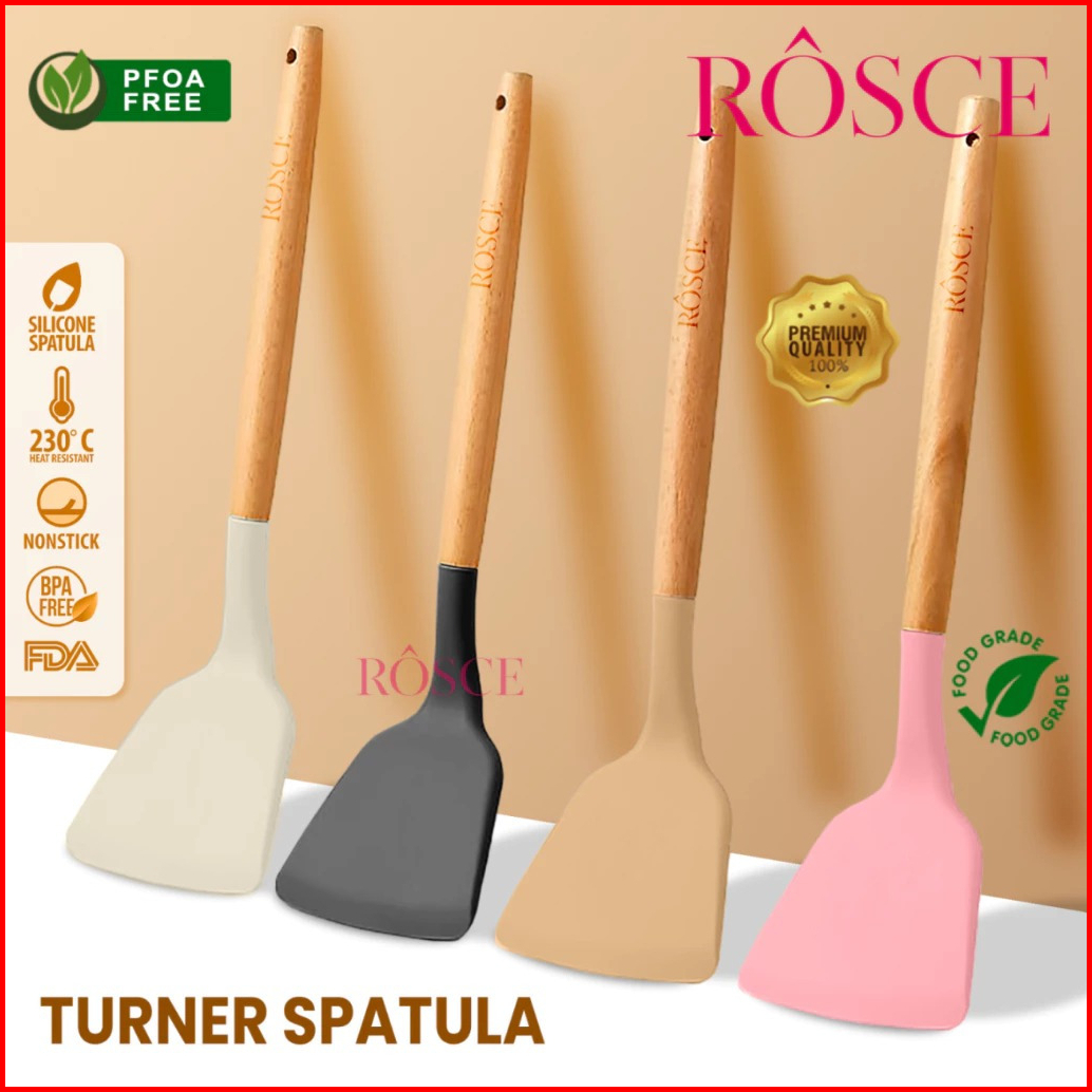Rosce Spatula Turner Silikon Gagang Kayu Sutil Silicone Sendok Masak Dapur Termurah Terlaris