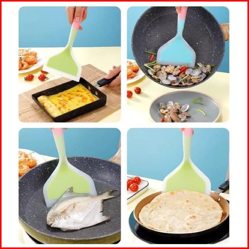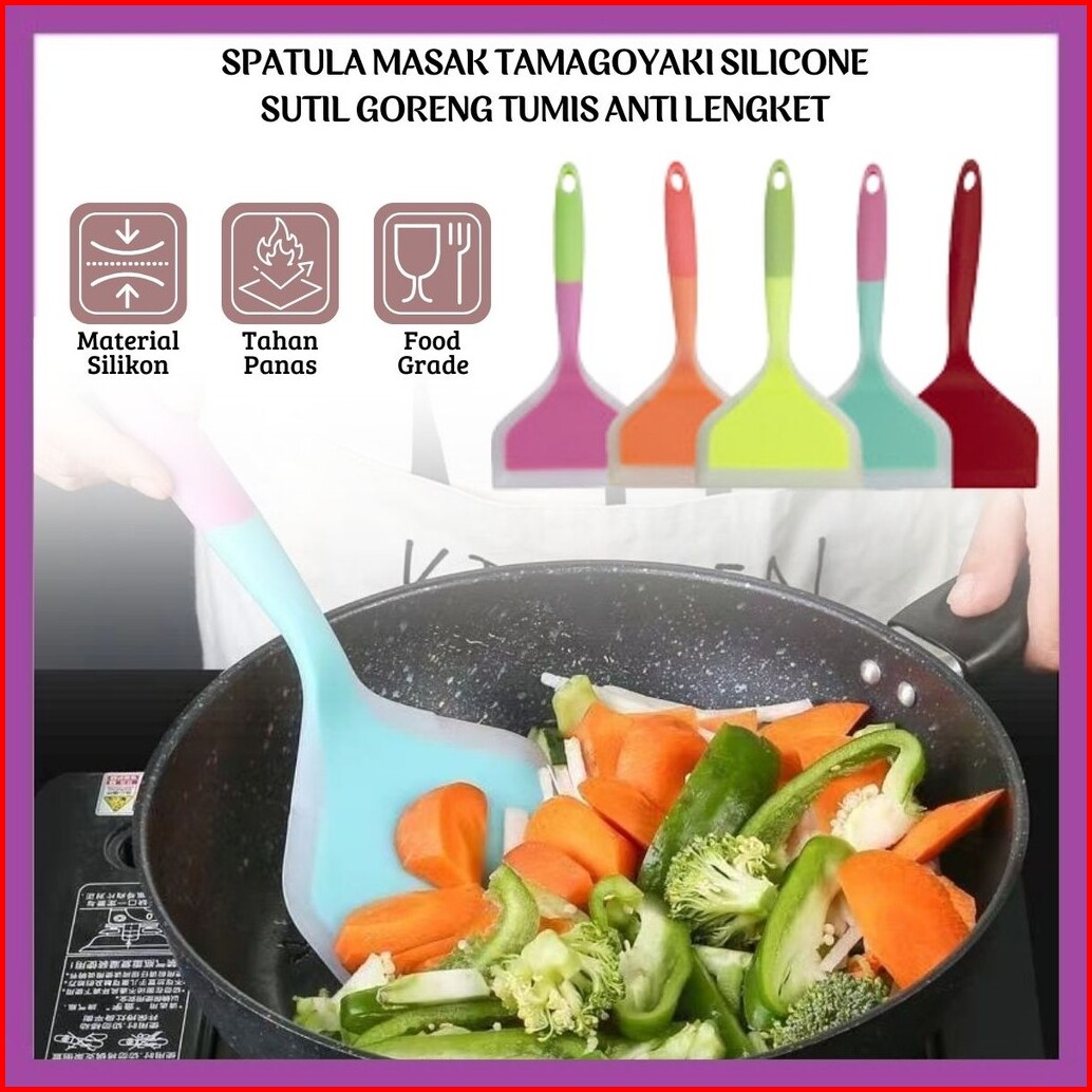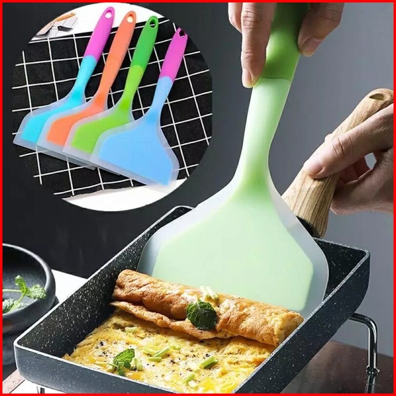 Spatula Tamagoyaki Silikon Sutil Ceper Sodet Rata Lebar Spatula Steak Sutil Masak Untuk Goreng Tumis