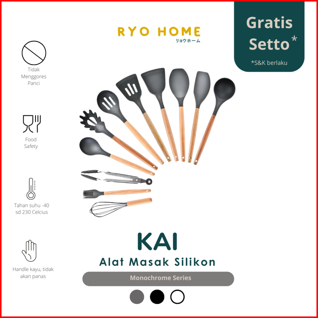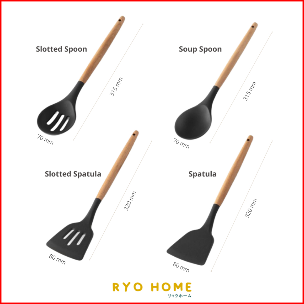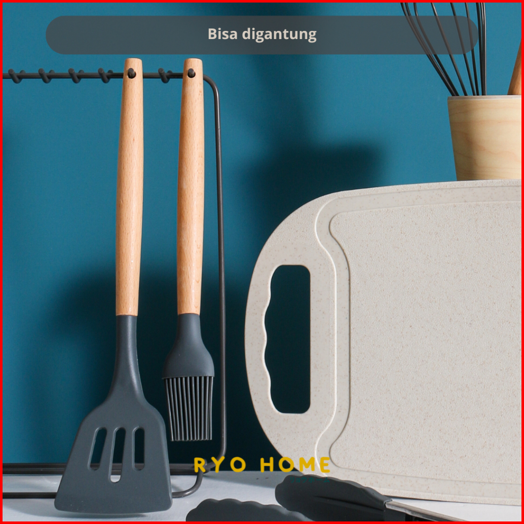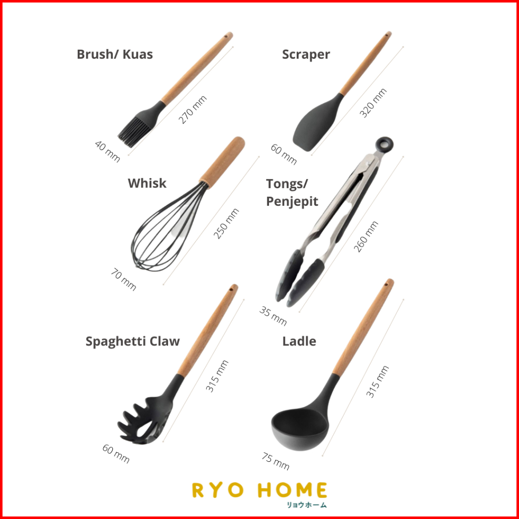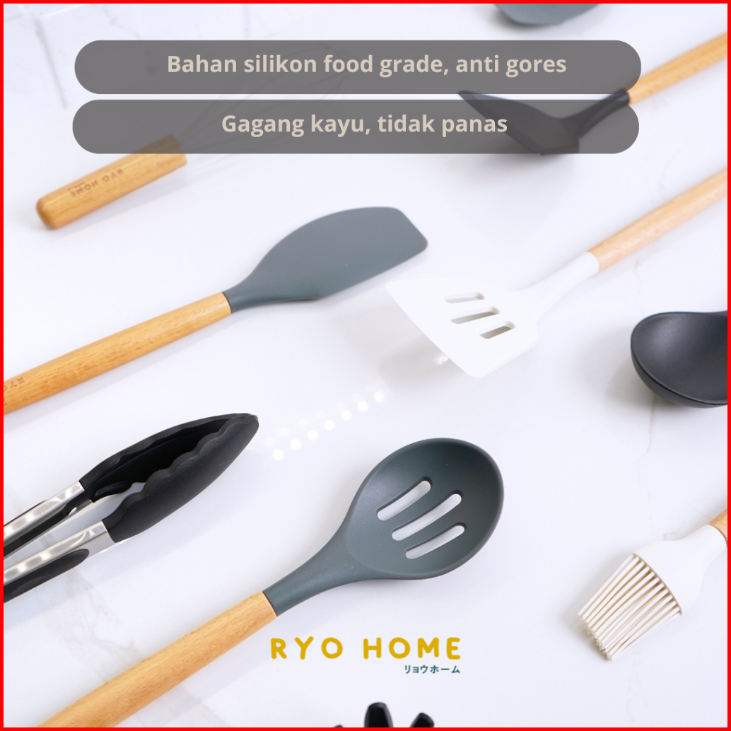 Ryo Home - Kai Peralatan Masak Bahan Silikon Dengan Gagang Kayu