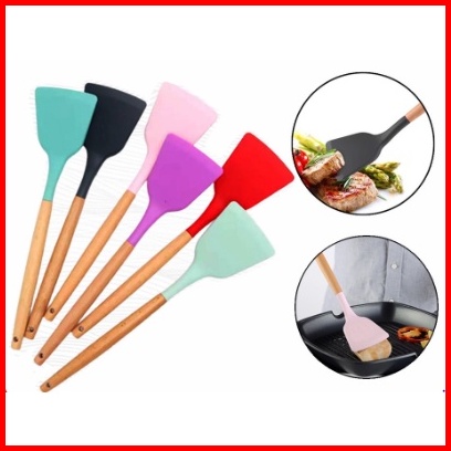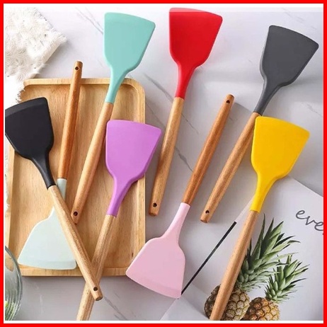 Gagang Kayu - Sutil Sodet Spatula Silikon Silicone Gagang Kayu Murah Spatula Masak Sutil Pegangan Kayu Peralatan Memasak